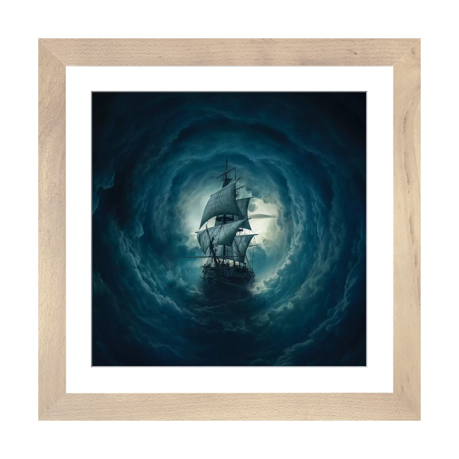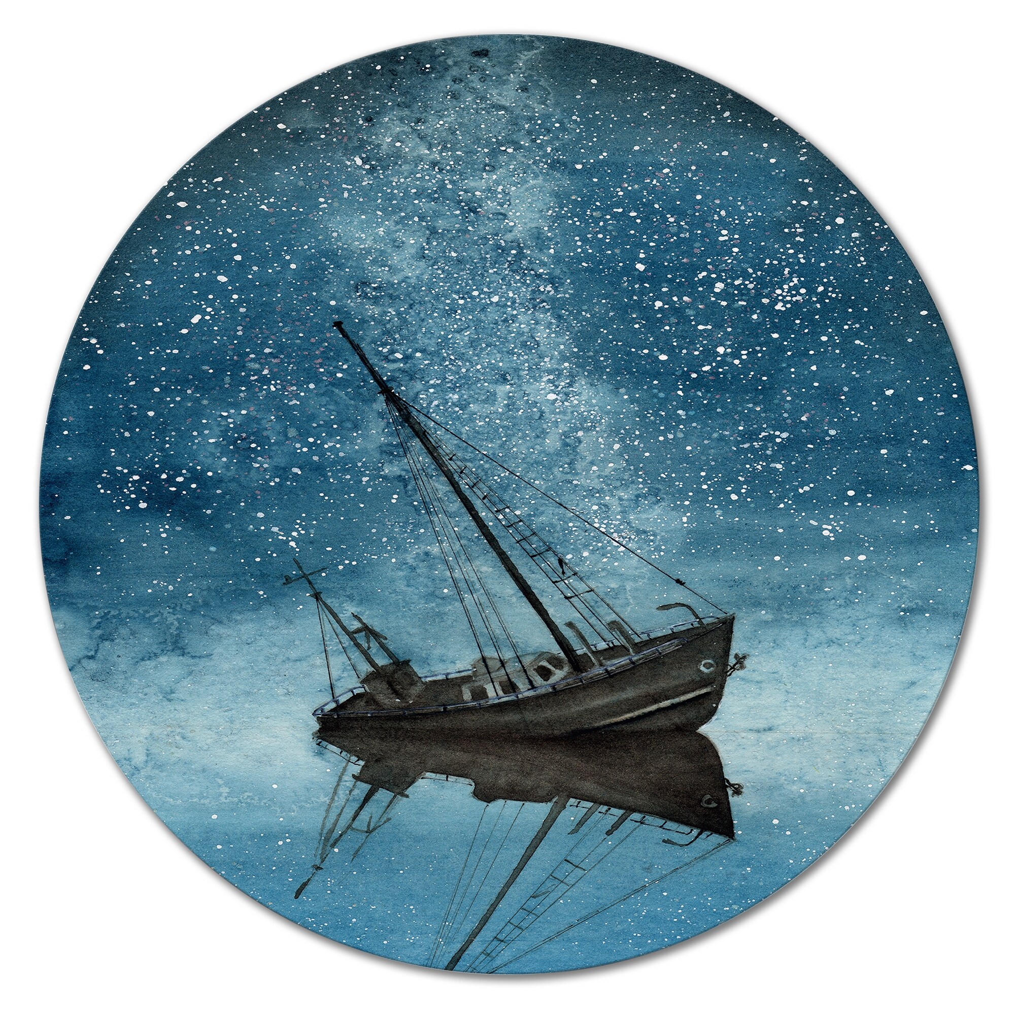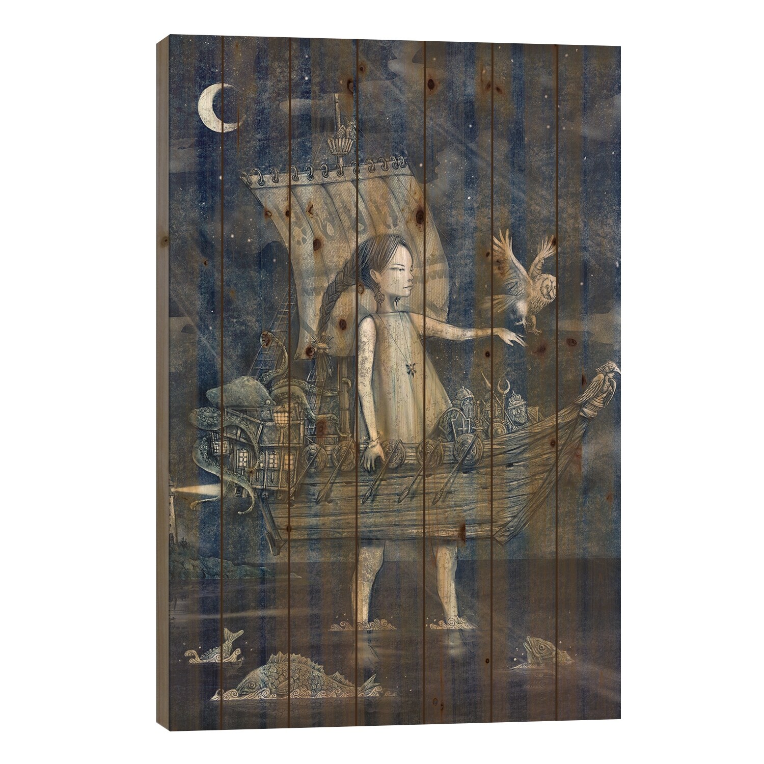 Indigo XIV Night Ship Print on Wood by Hiroyuki Kurava - Multi-Color