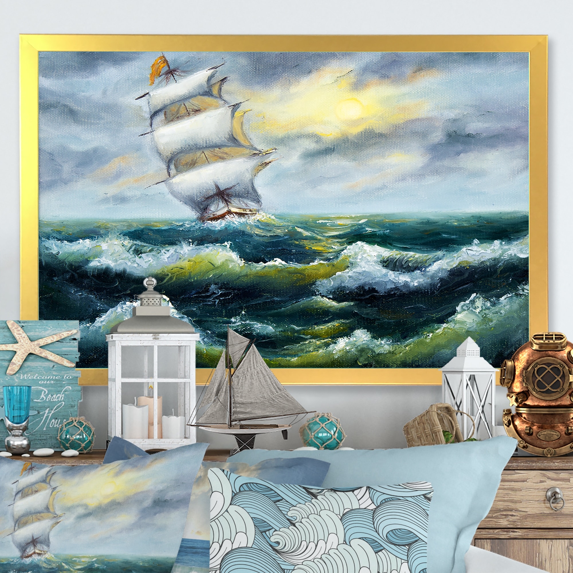 Designart "Ship On High Seas I" Modern Landscape Beach Wall Art for Living Room