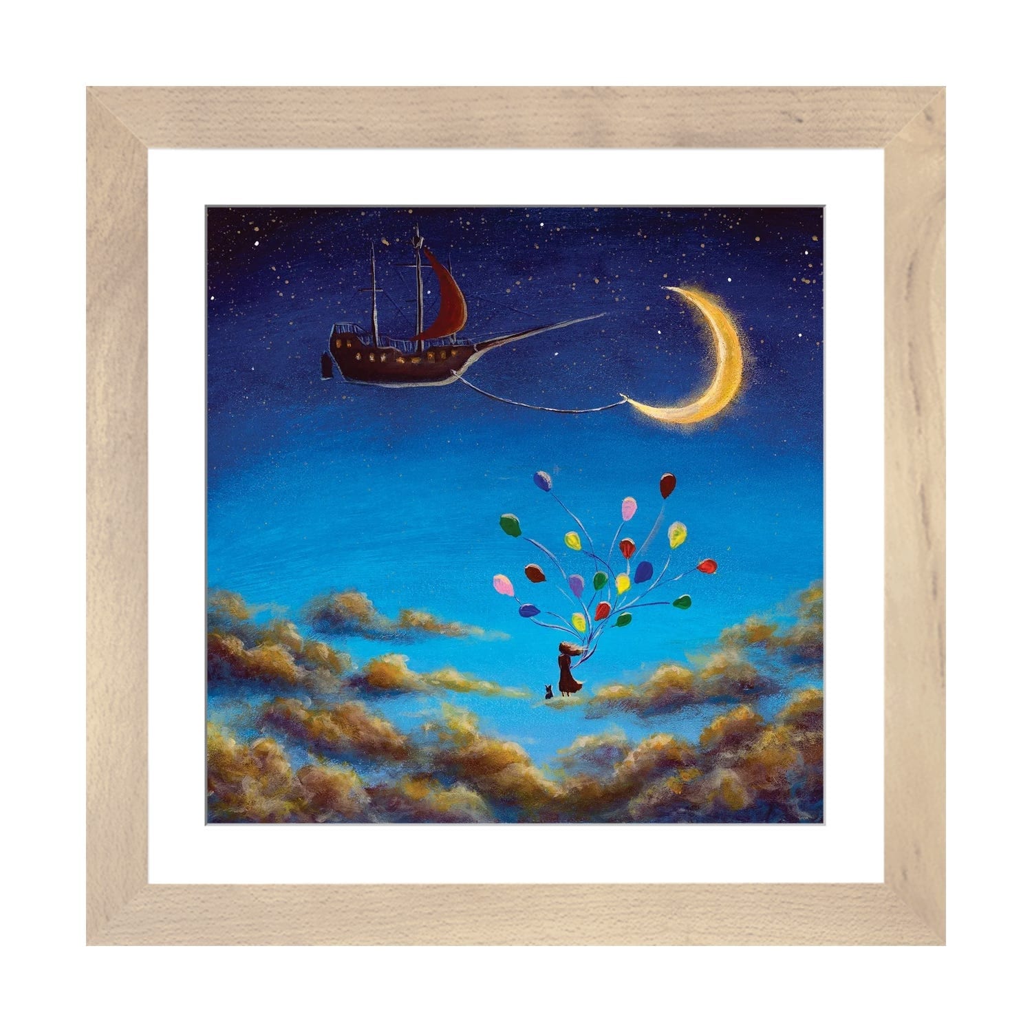 iCanvas "Girl With Balloons And Cat on Clouds in Sky Looks At Ship And Big Moon" by Valery Rybakow