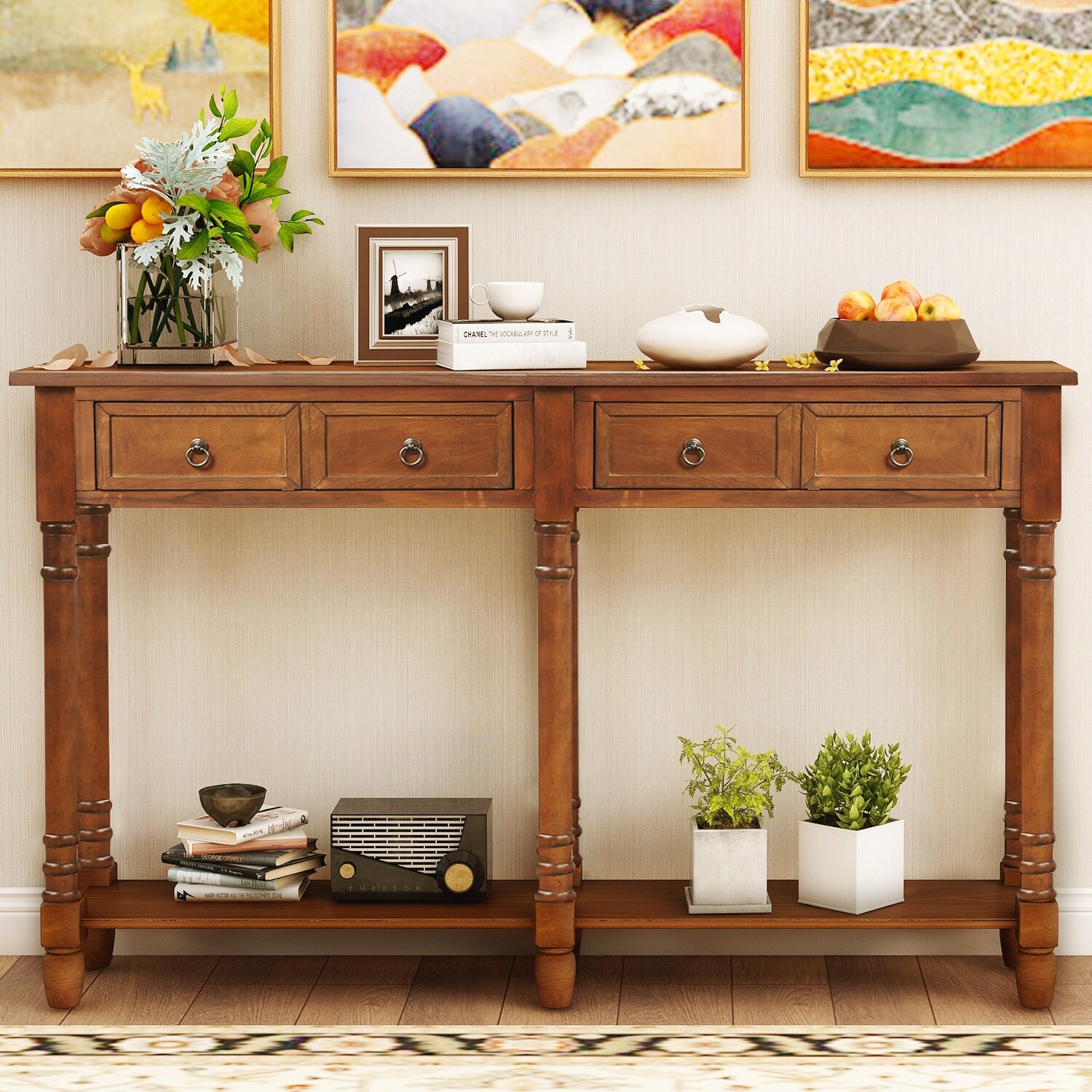 57.9" Rectangular Console Table with 4 Drawers Side Tables for Living Room & Hallway Sofa Table with Long Shelf