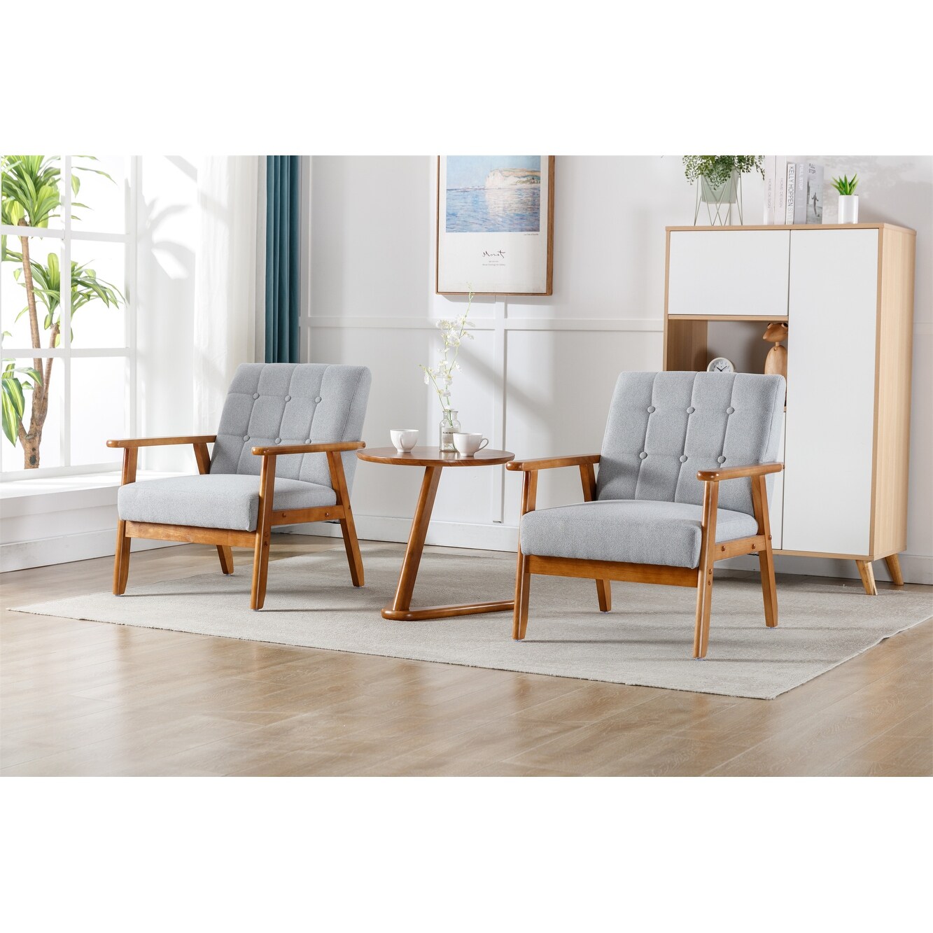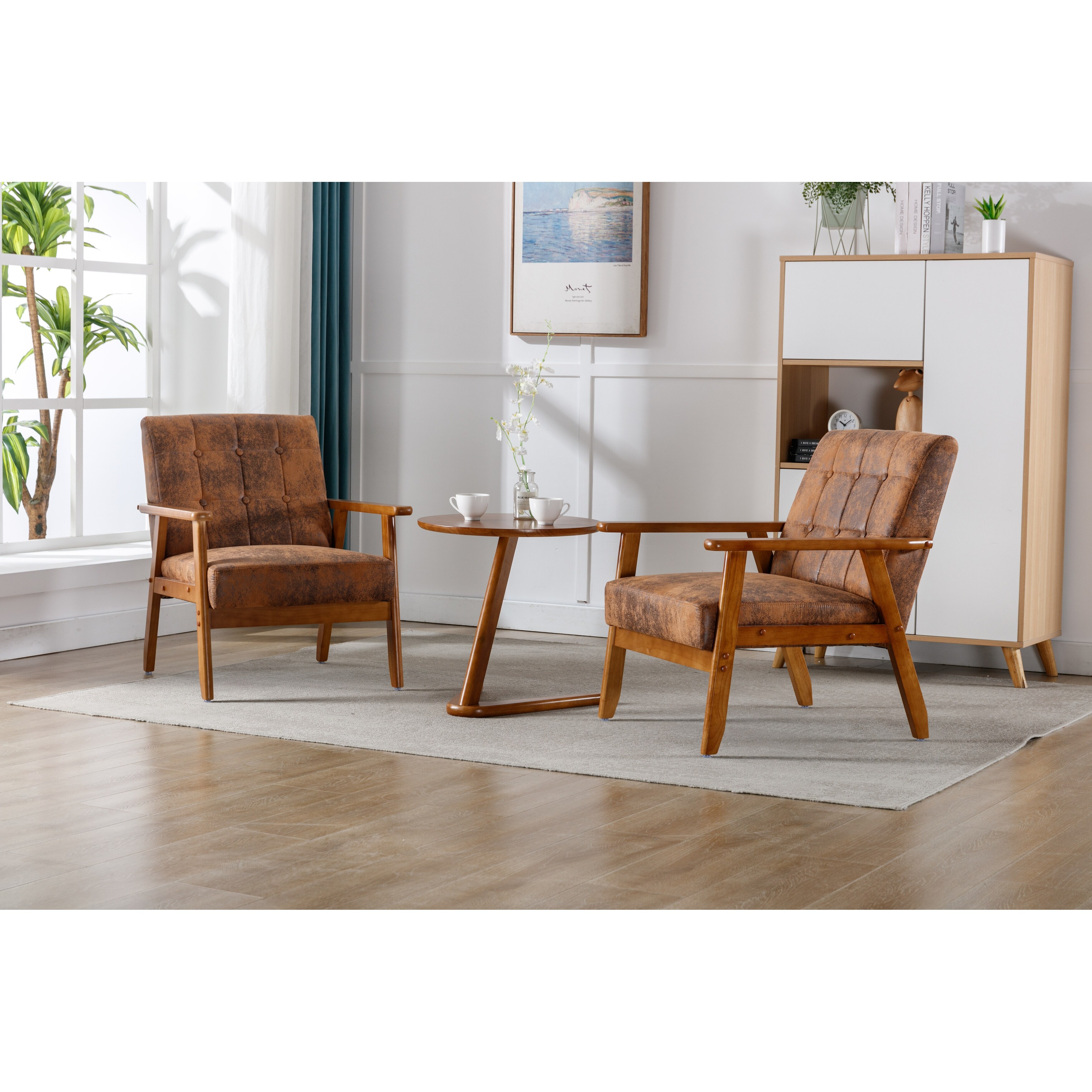 Set of 2 Accent Chairs with 1 Side Table, Mid Century Modern Accent Chair, Wood and Fabric Armchairs Side Chair