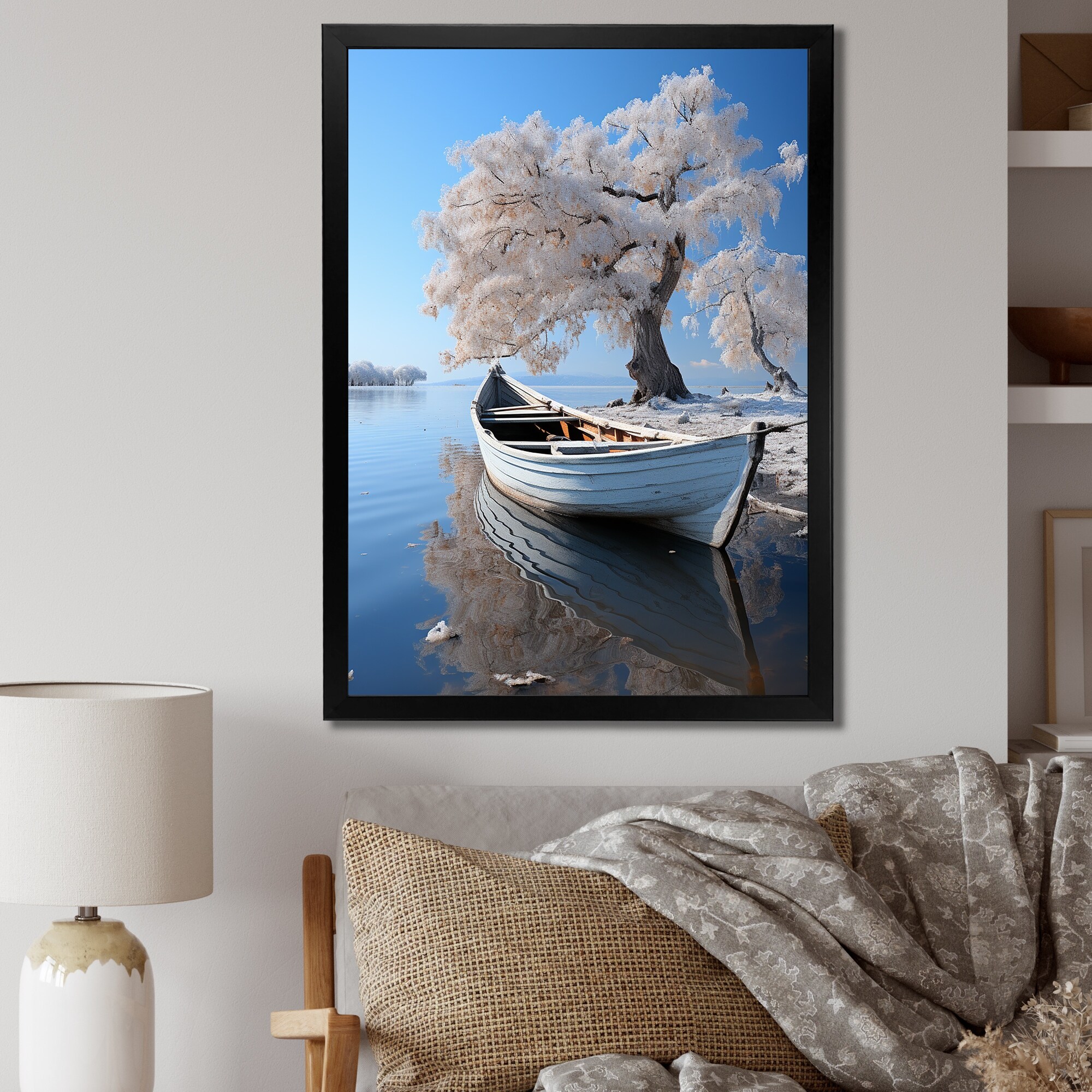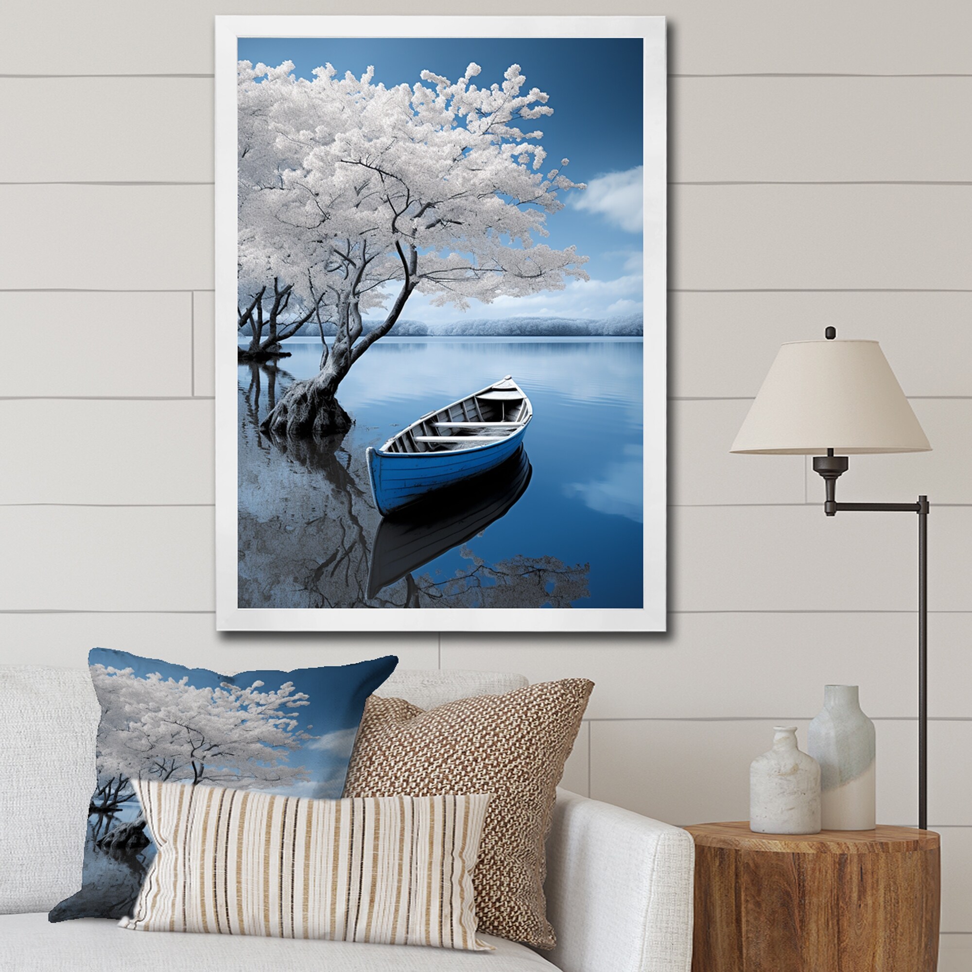 Designart "White Lake Silent Waters I" Lake House Cottage Framed Canvas Prints