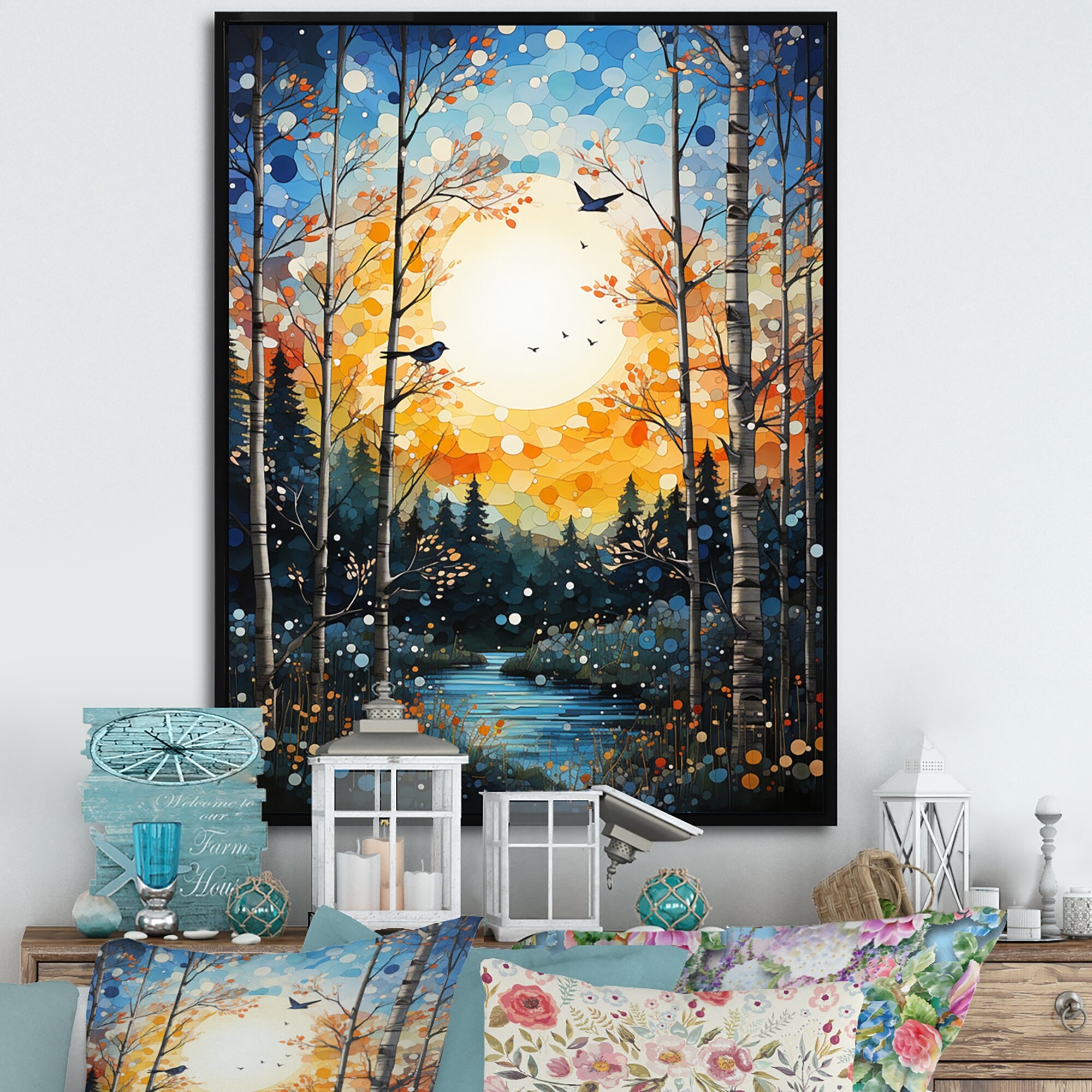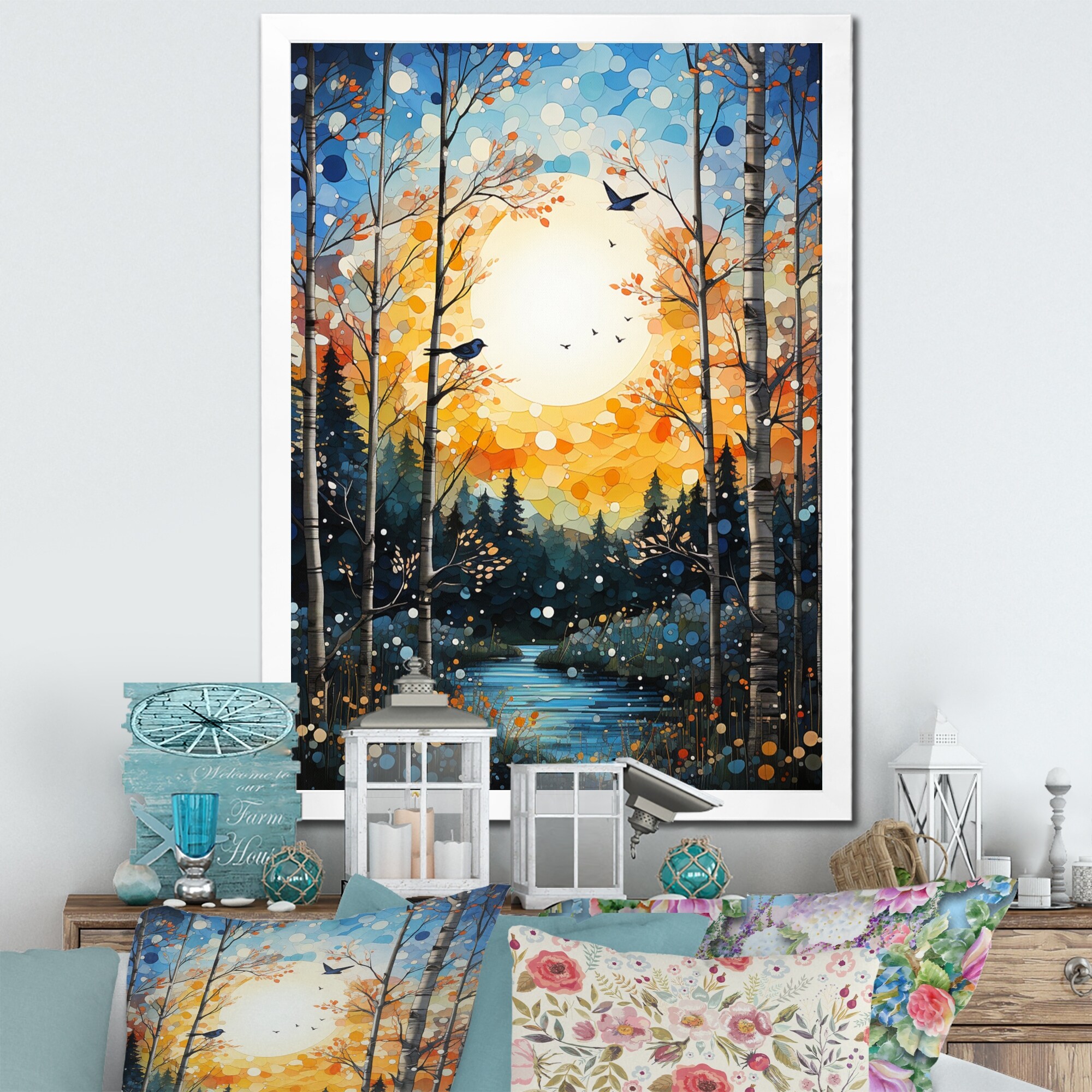 Designart "Forest Silent Symphony Pointillism III" Forest Framed Wall Art Prints