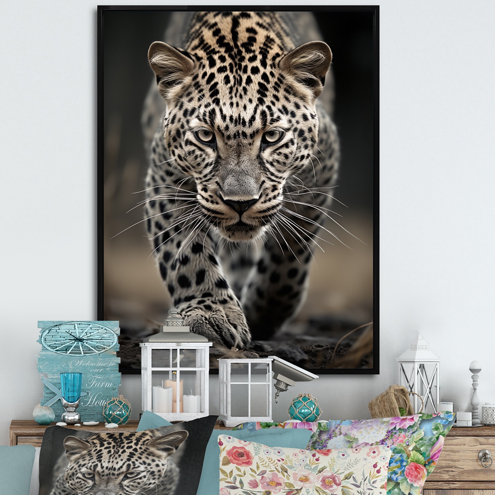 Designart "Leopard Silent Stalk I" Animals Leopard Framed Wall Art Living Room
