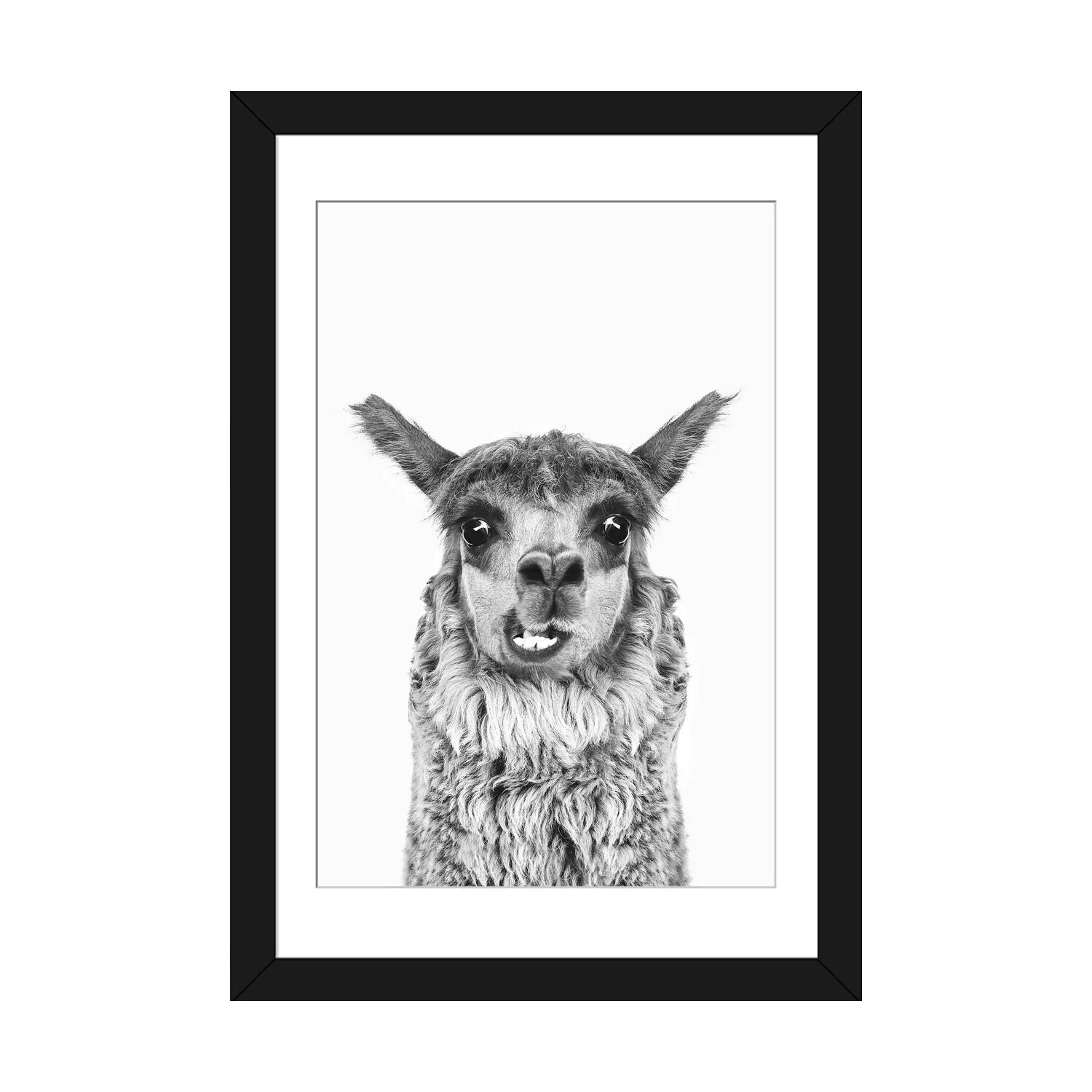 iCanvas "Happy AIpaca in Black & White" by Sisi & Seb Framed