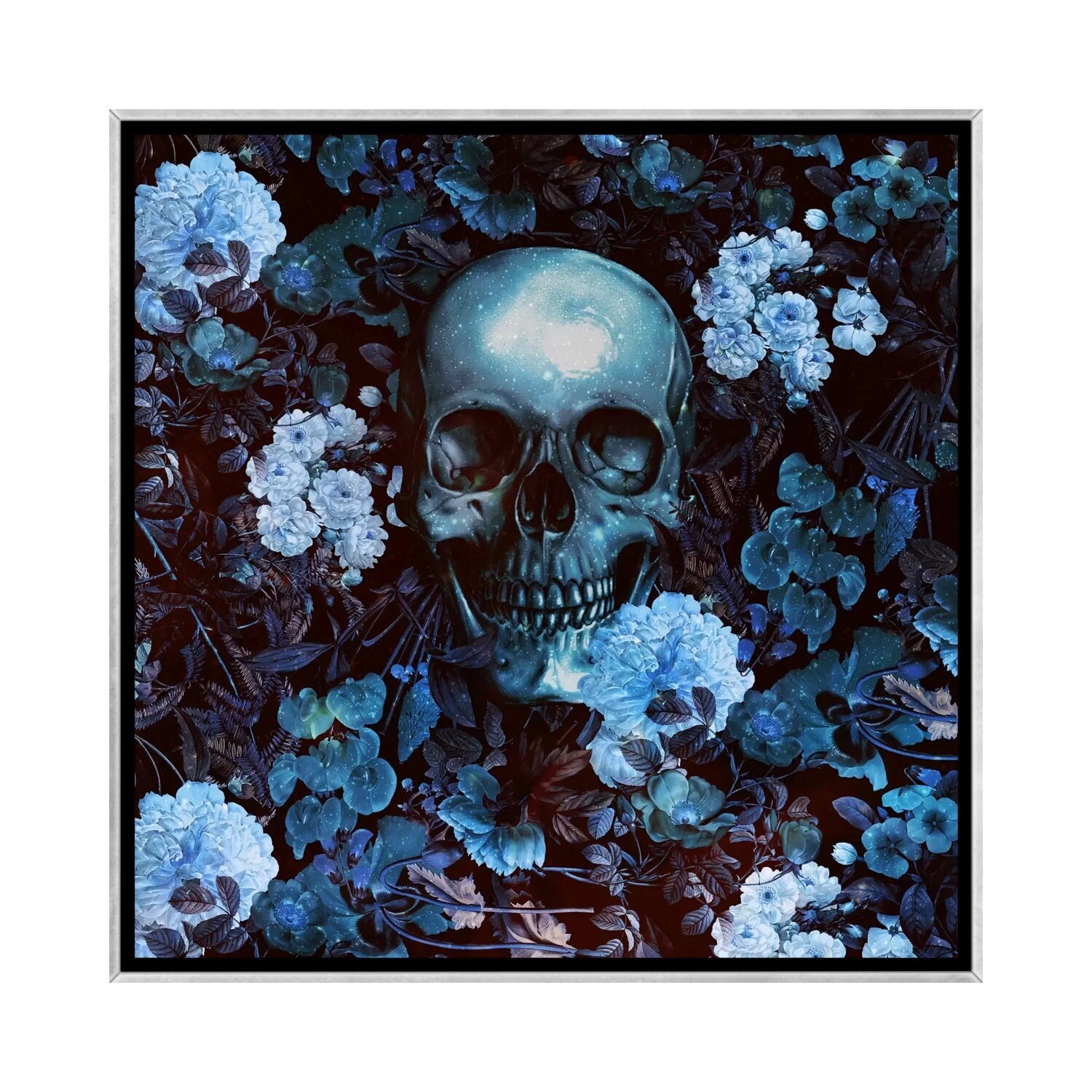 iCanvas "Floral Skull Blue" by Riza Peker Framed Canvas Print