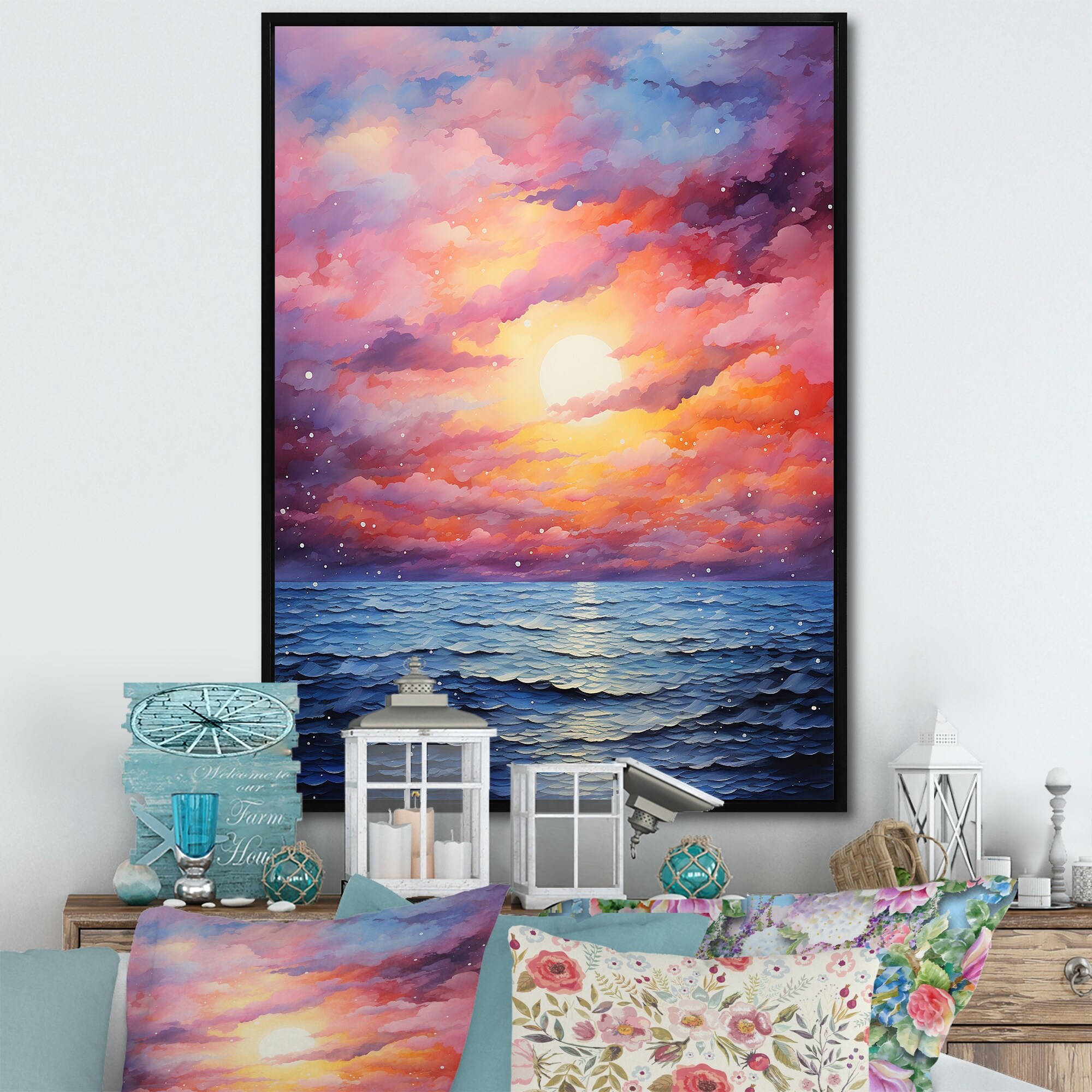 Designart "Pink Sky Photo Celestial Symphony II" Sky Framed Wall Art Living Room