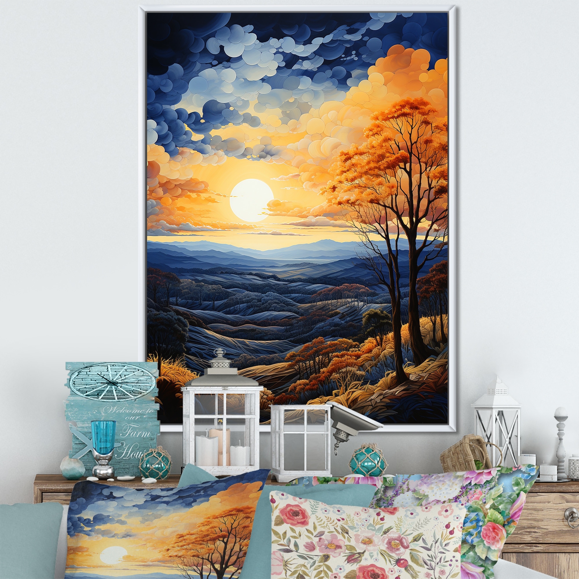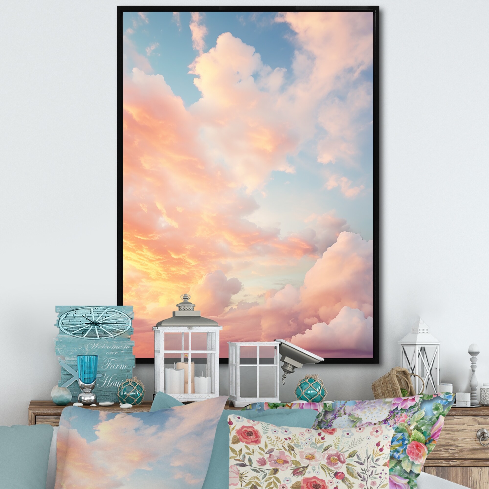 Designart "Sky Celestial Canopy Pastoral II" Sky Framed Wall Art Living Room