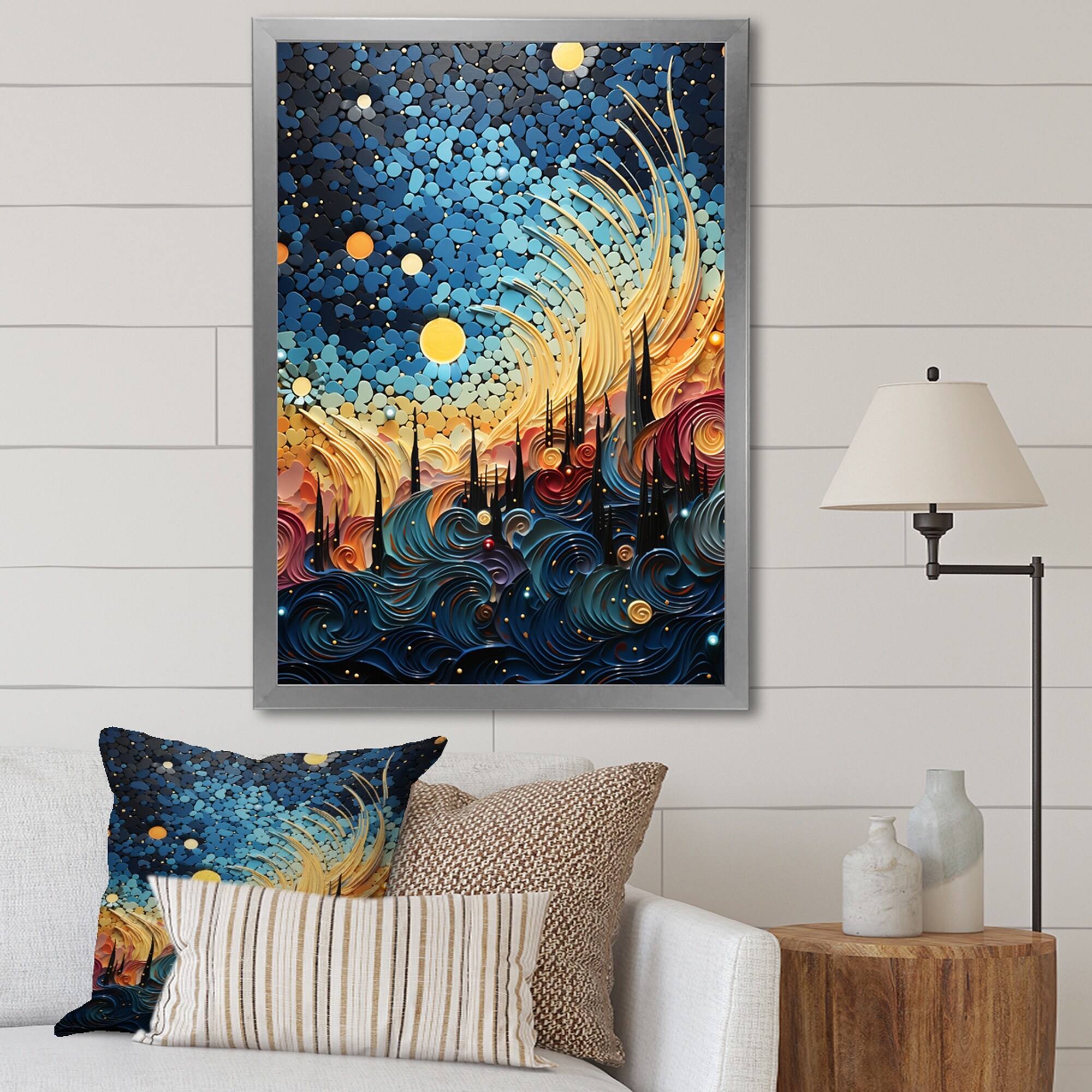Designart "Sky Celestial Mosaic Landscape II" Sky Framed Wall Decor
