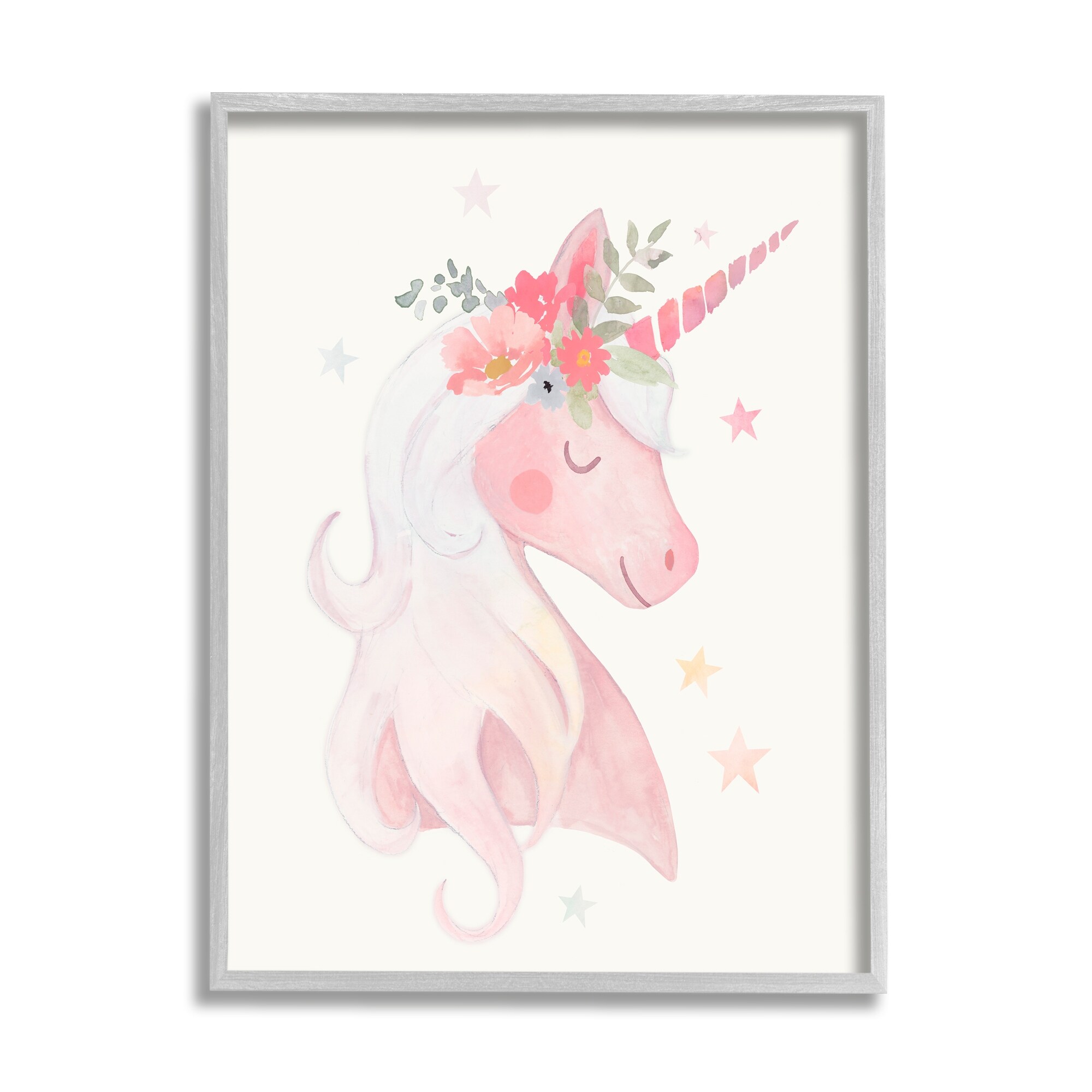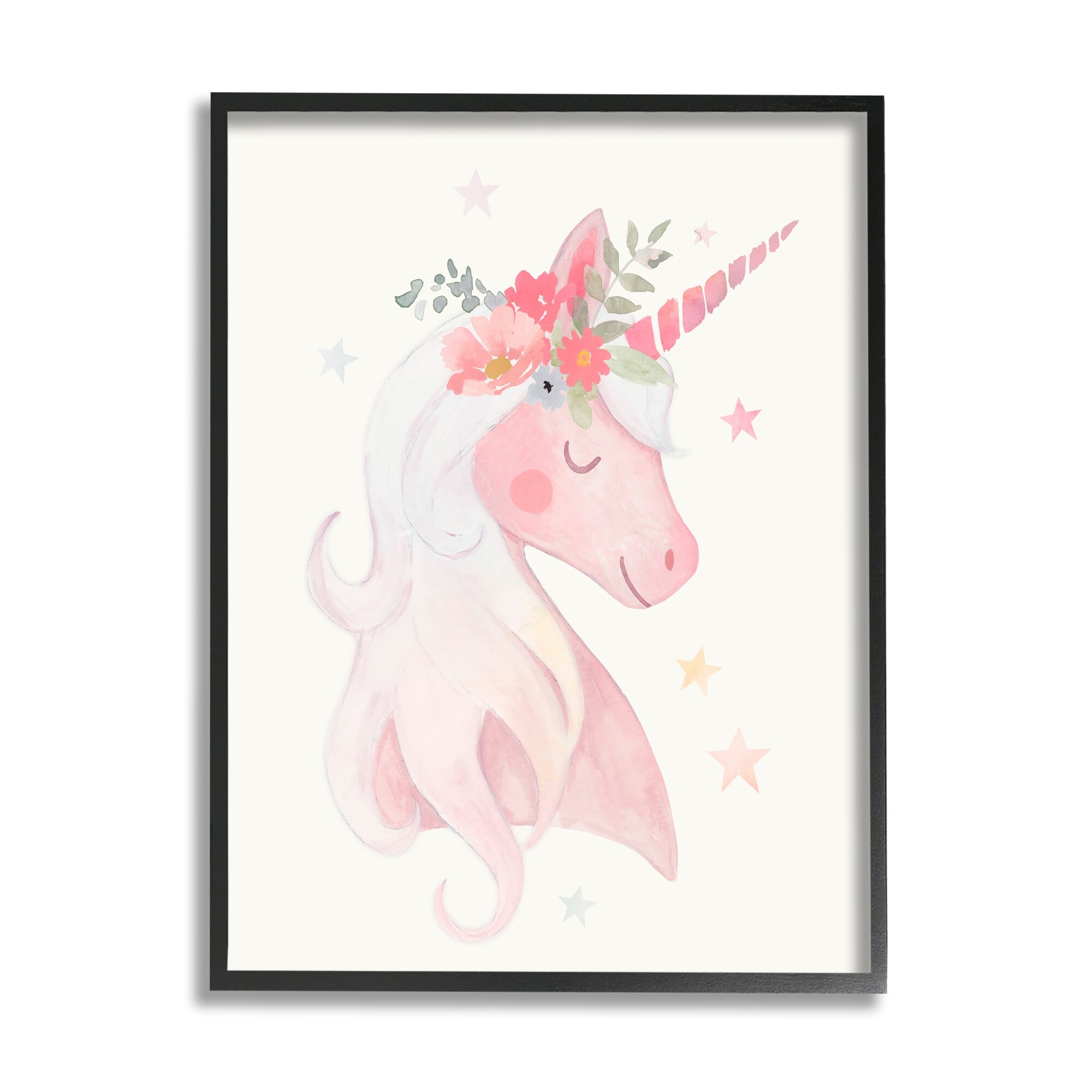 Stupell Pastel Smiling Unicorn Pink Flower Blossom Crown Framed Wall Art, Design by Victoria Barnes
