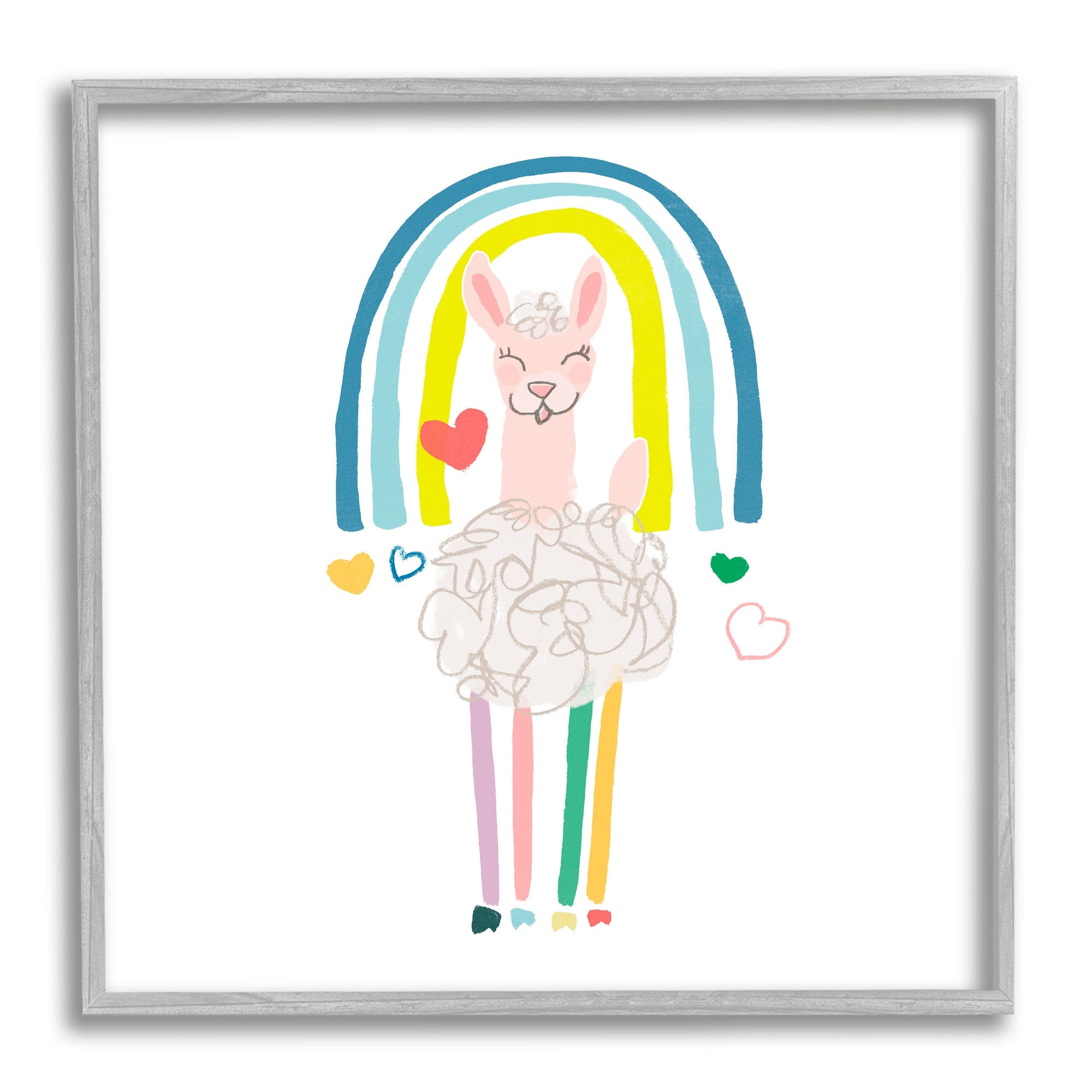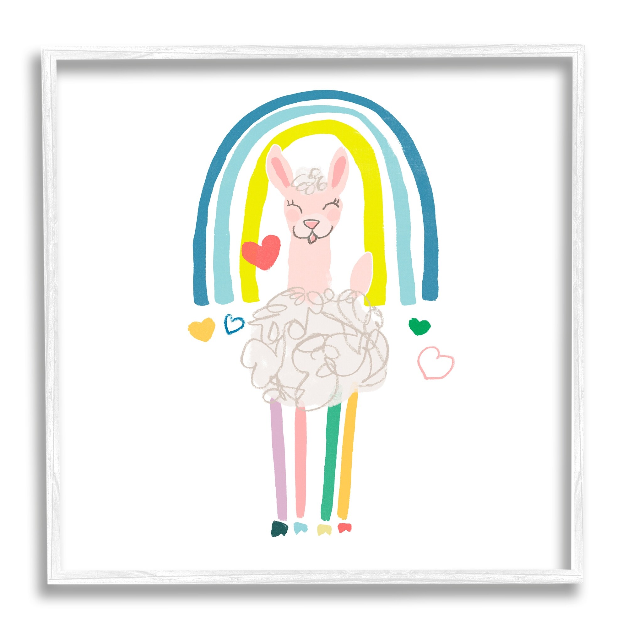 Stupell Cute Smiling Sheep Rainbow Hearts Design Framed Wall Art - Multi-Color