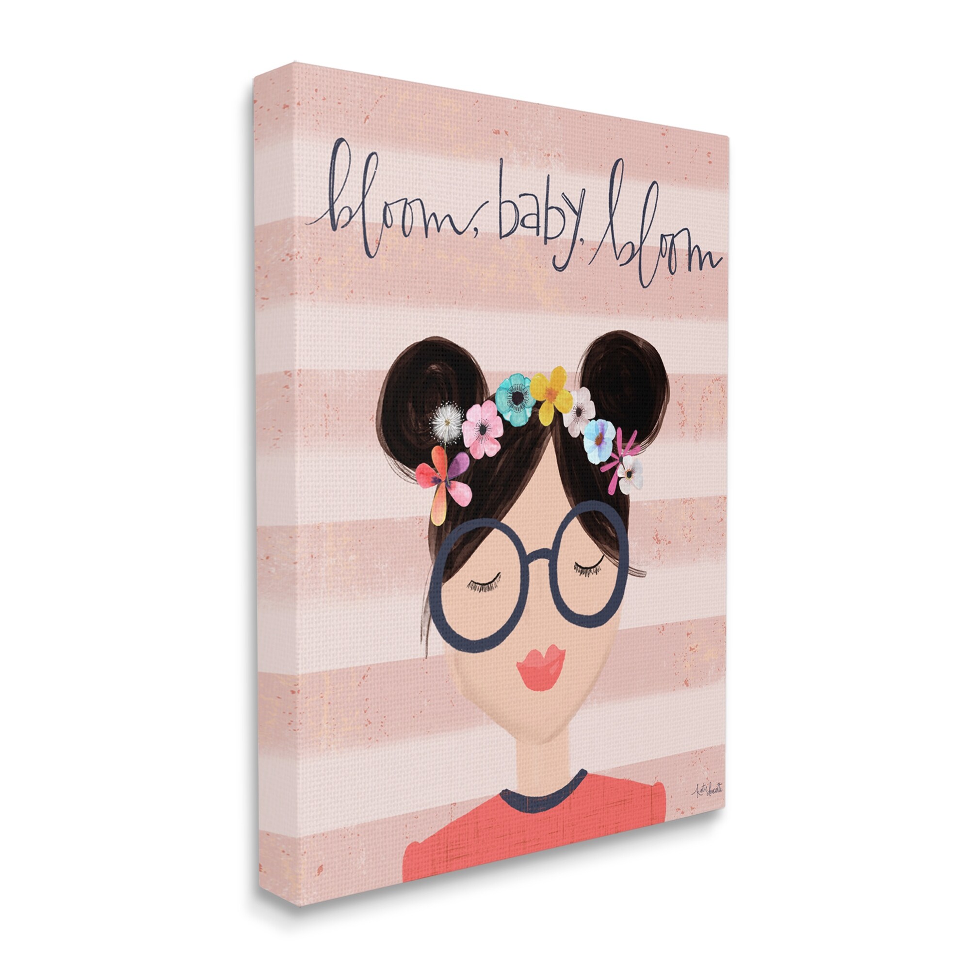 Stupell Industries Bloom Baby Bloom Phrase Pink Stripe Smiling Woman Canvas Wall Art