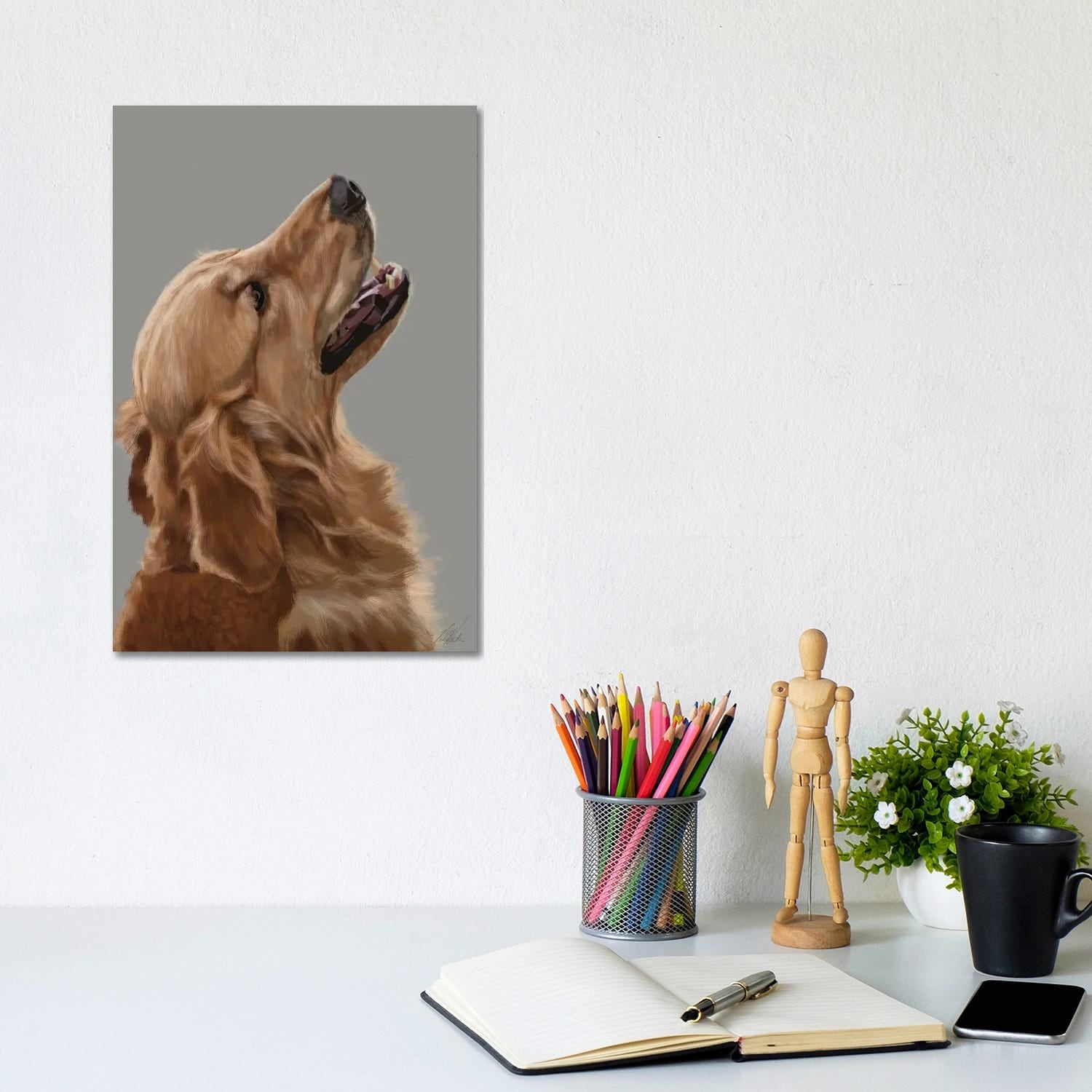 Stupell Industries Golden Retriever Smiling Portrait Framed Giclee Art by Matthew Hillier