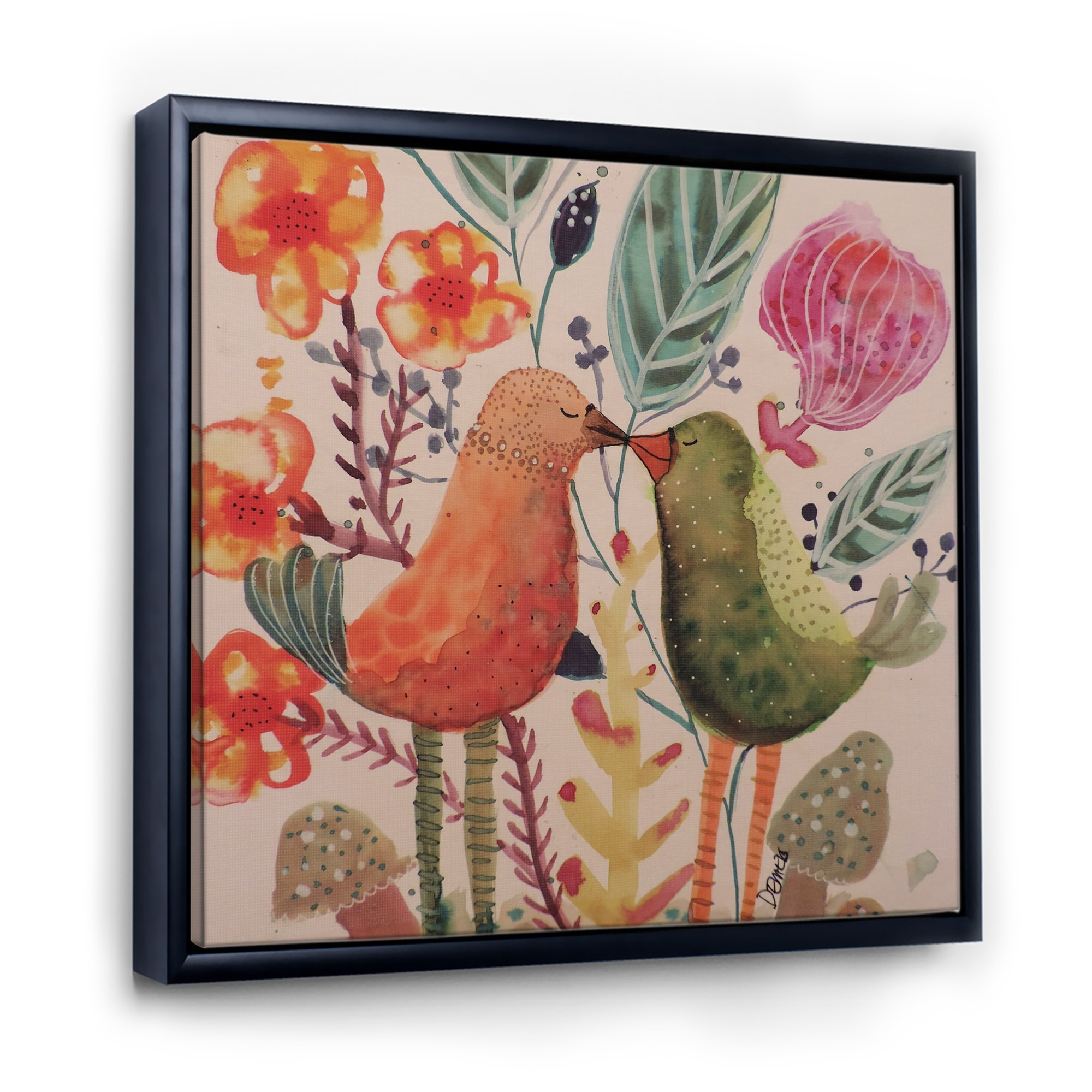 Designart "Smiling Bird Kiss " Cottage Framed Canvas Artwork Print