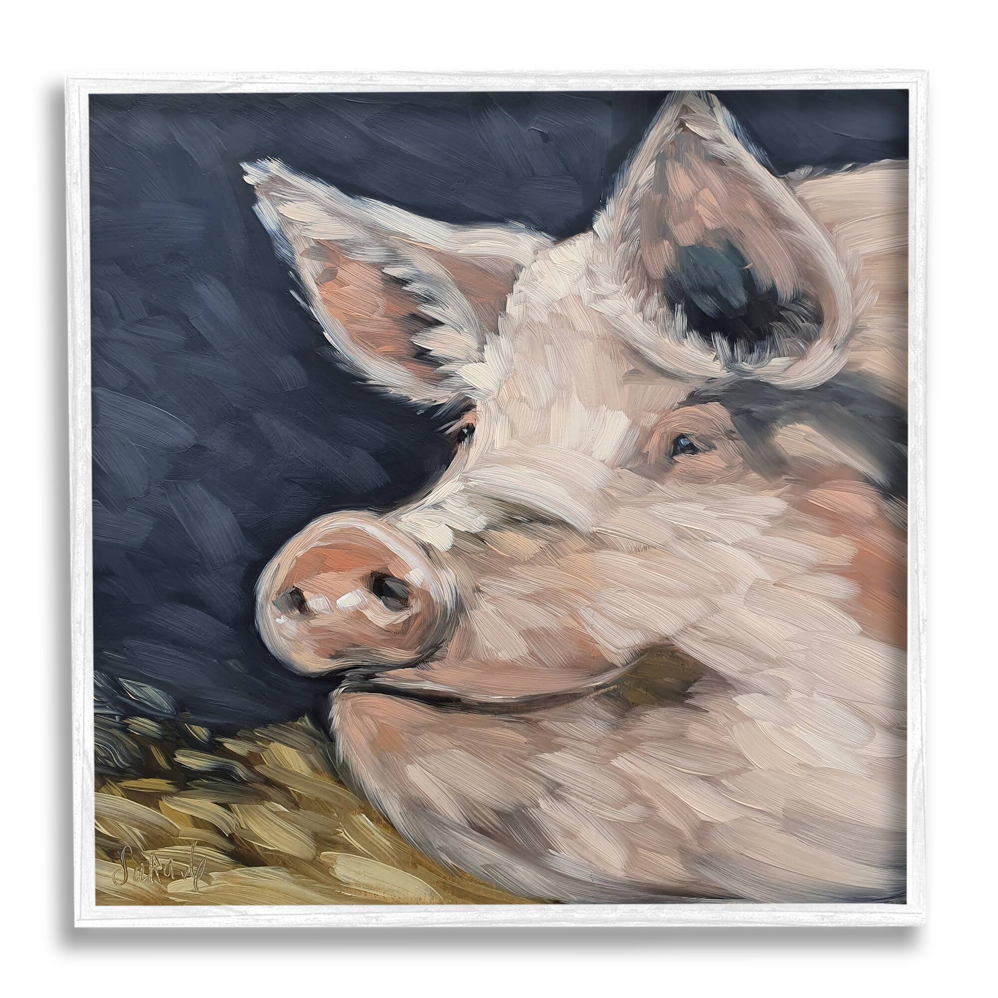 Stupell Industries Smiling Pig Farmhouse Animal Framed Giclee Art by Sara G. Designs