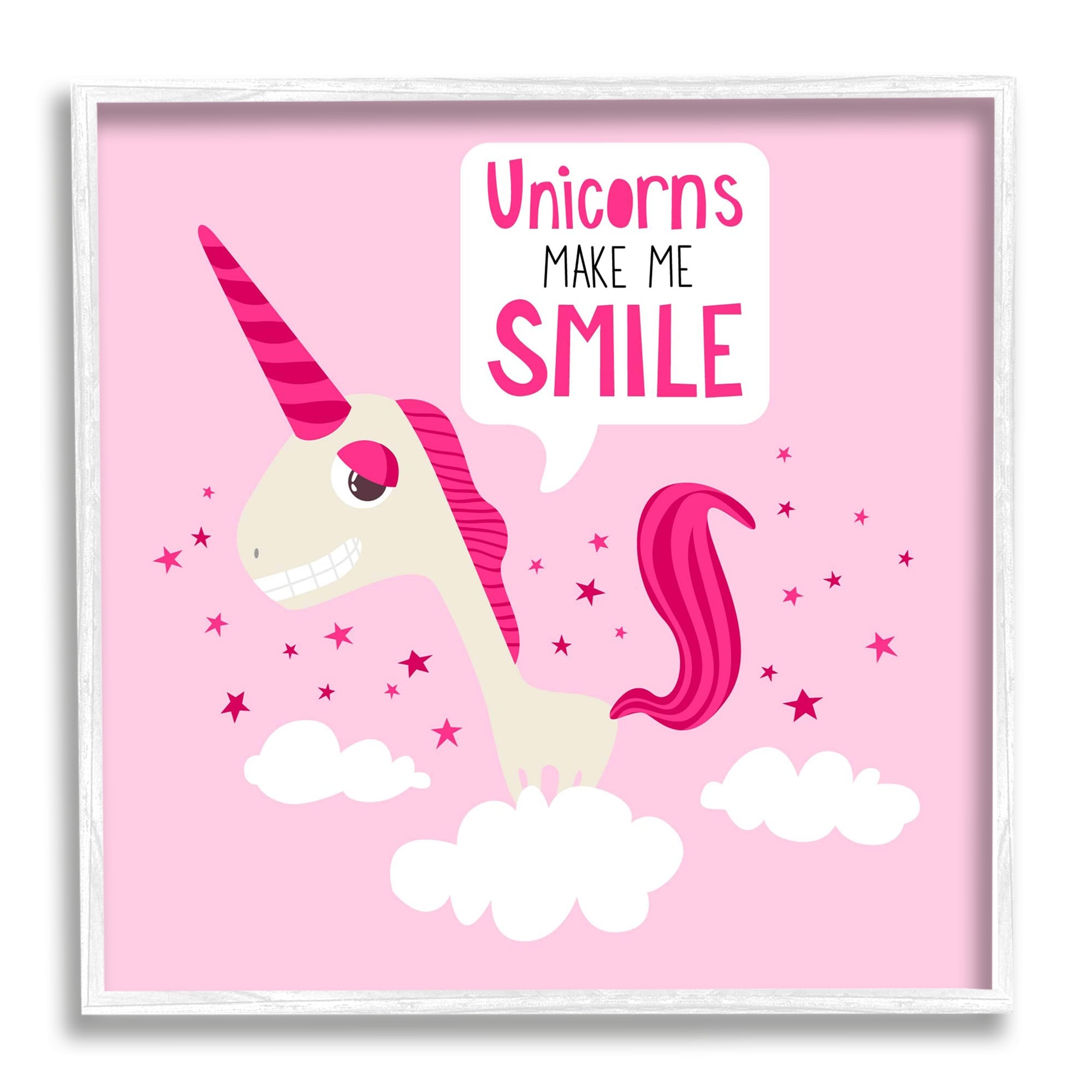 Stupell Unicorns Make Me Smile Phrase Happy Pink Unicorn Framed Wall Art