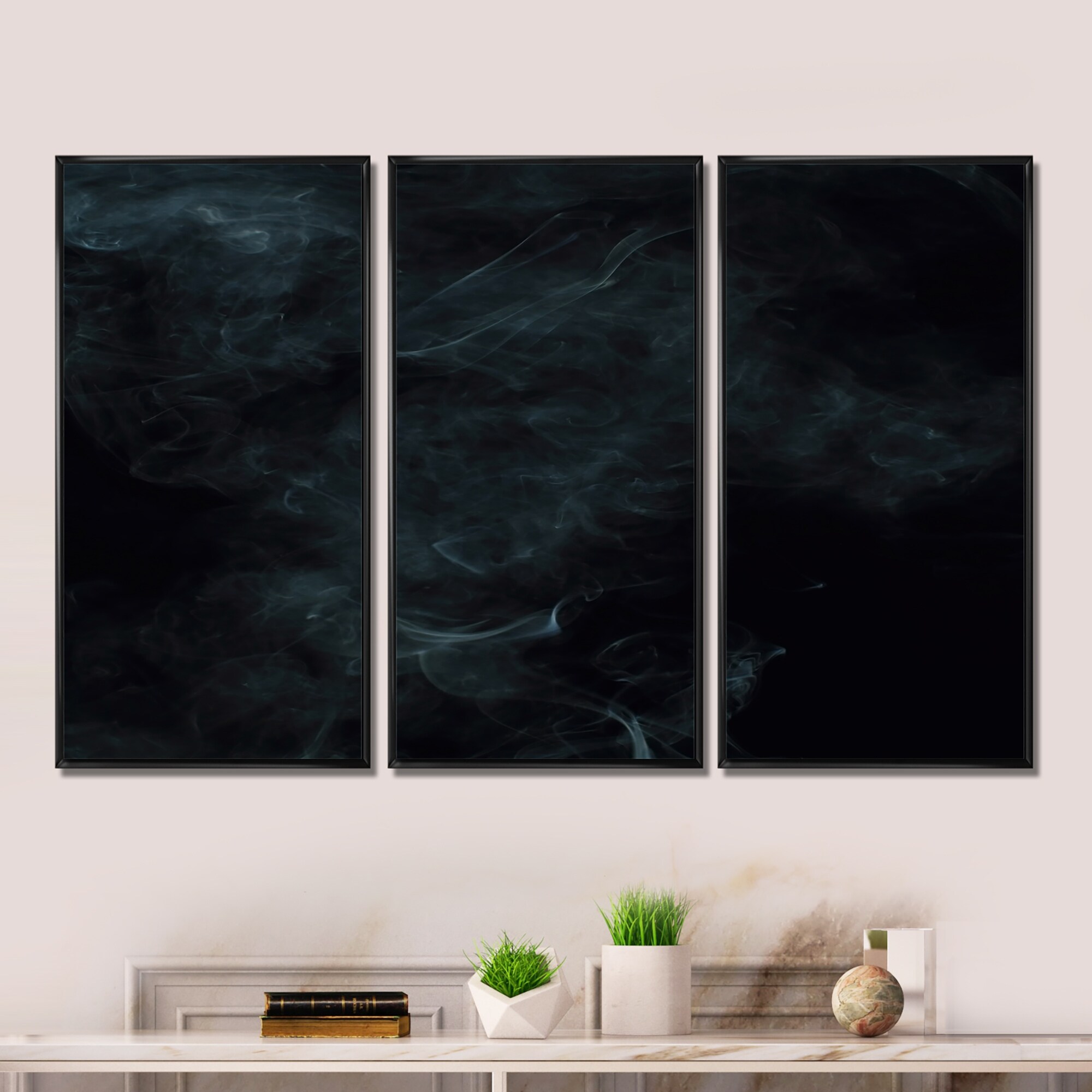 Designart "Cloud of Gray Smoke in the Dark" Modern Framed Wall Decor Set of 3 - 4 Colors of Frames