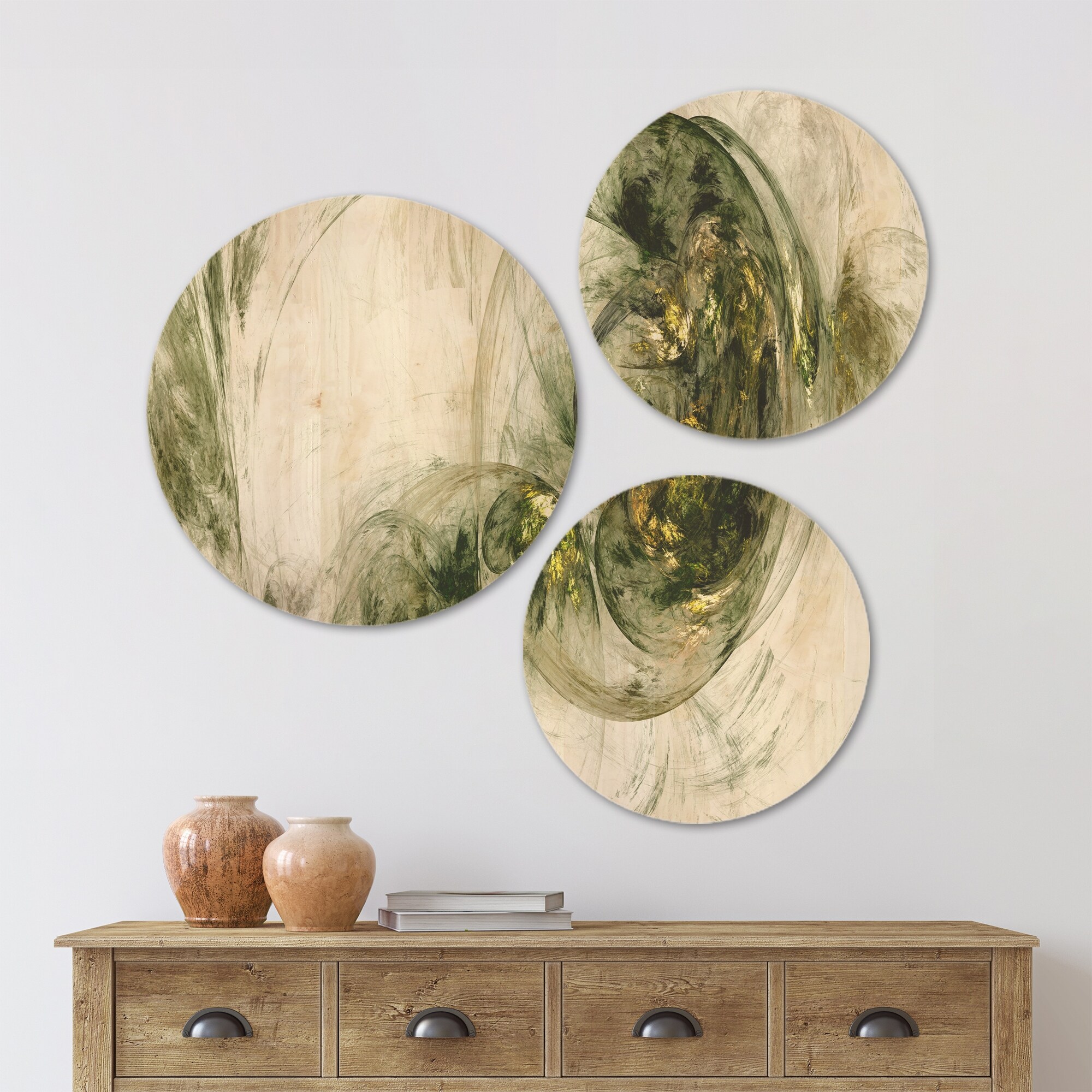 Designart 'Colored Smoke Green' Abstract Wood Wall Art Set of 3 Circles