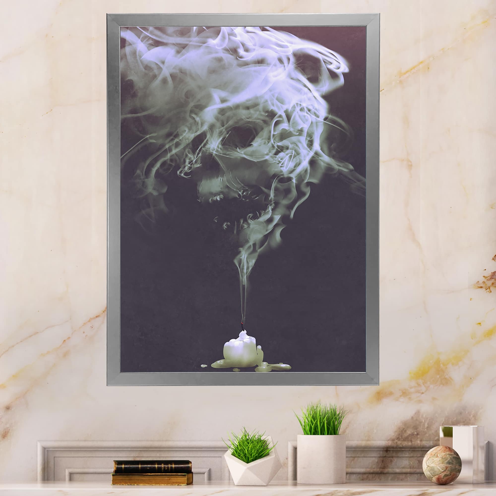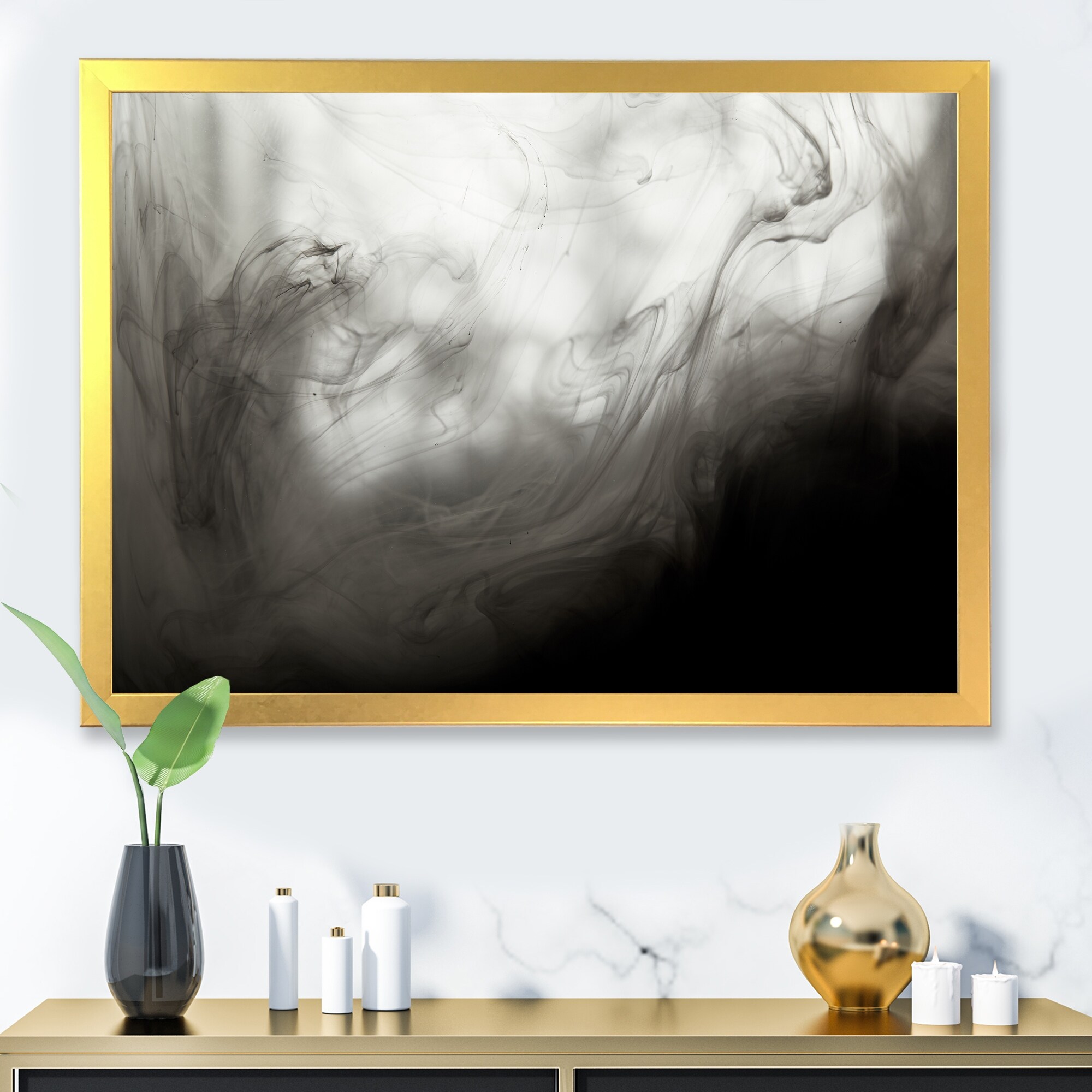 Designart "Grunge Smoke Ink Art" Modern Framed Wall Decor