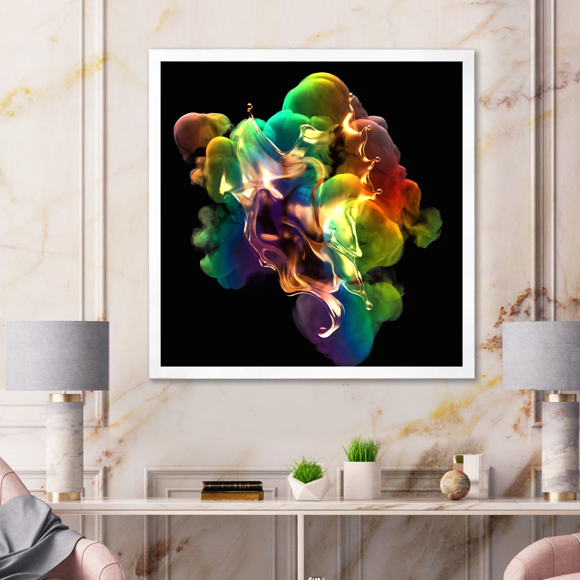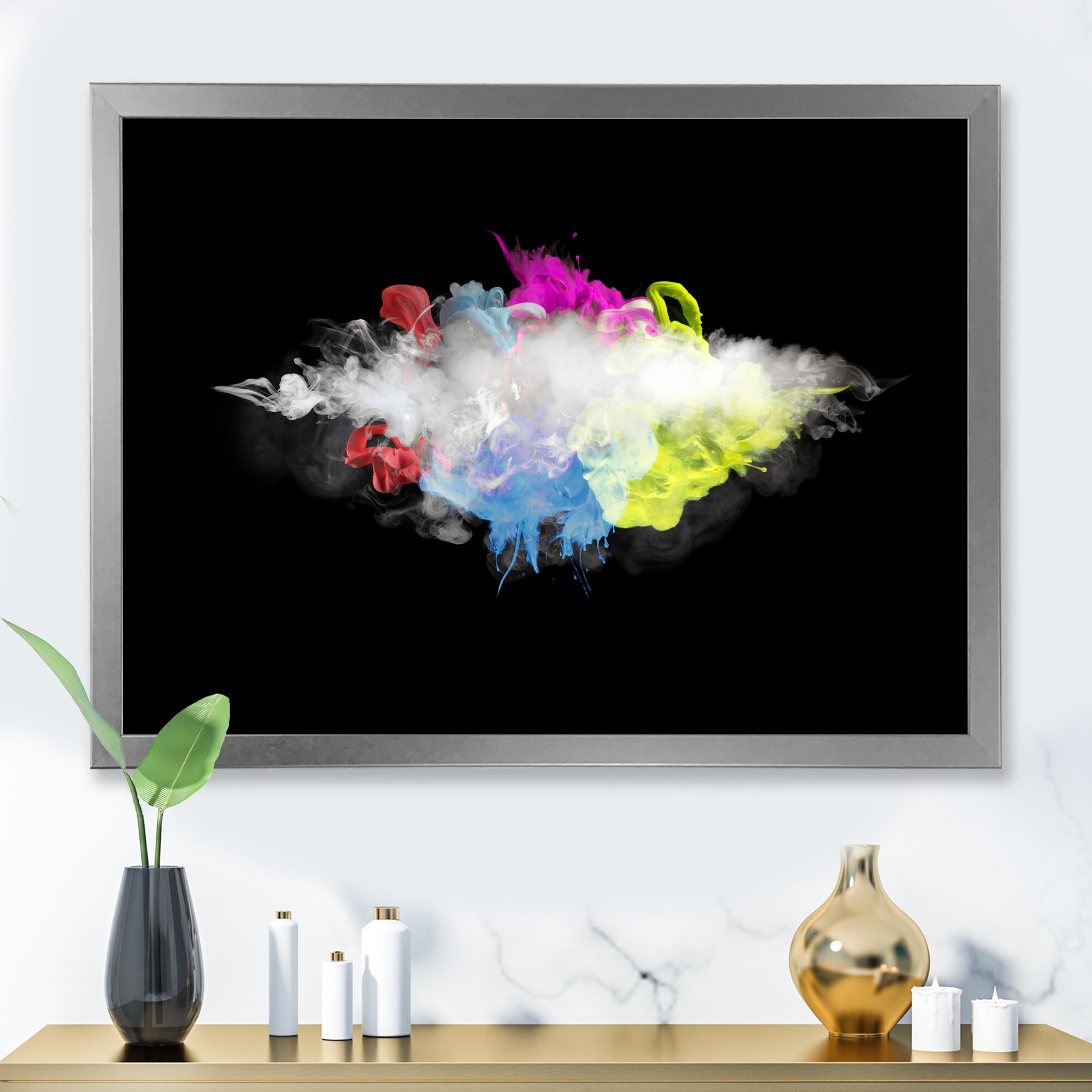 Designart "White Smoke With Vibrant Colours I" Modern Framed Art Print