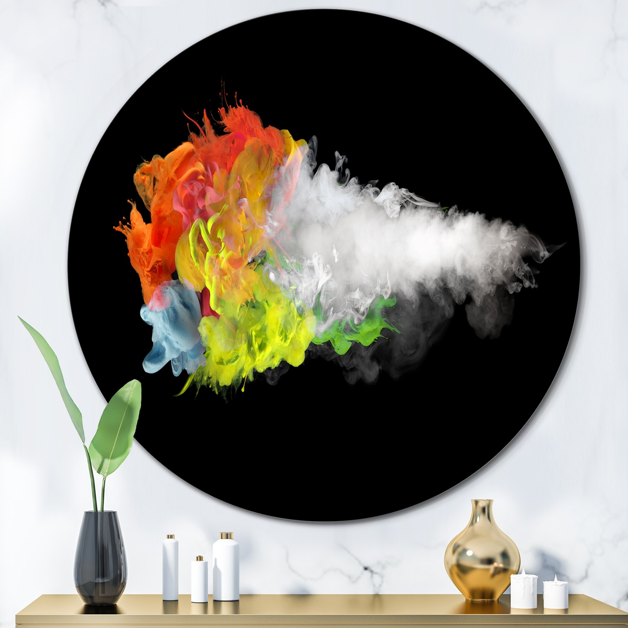 Designart 'White Smoke With Vibrant Colours II' Modern Metal Circle Wall Art