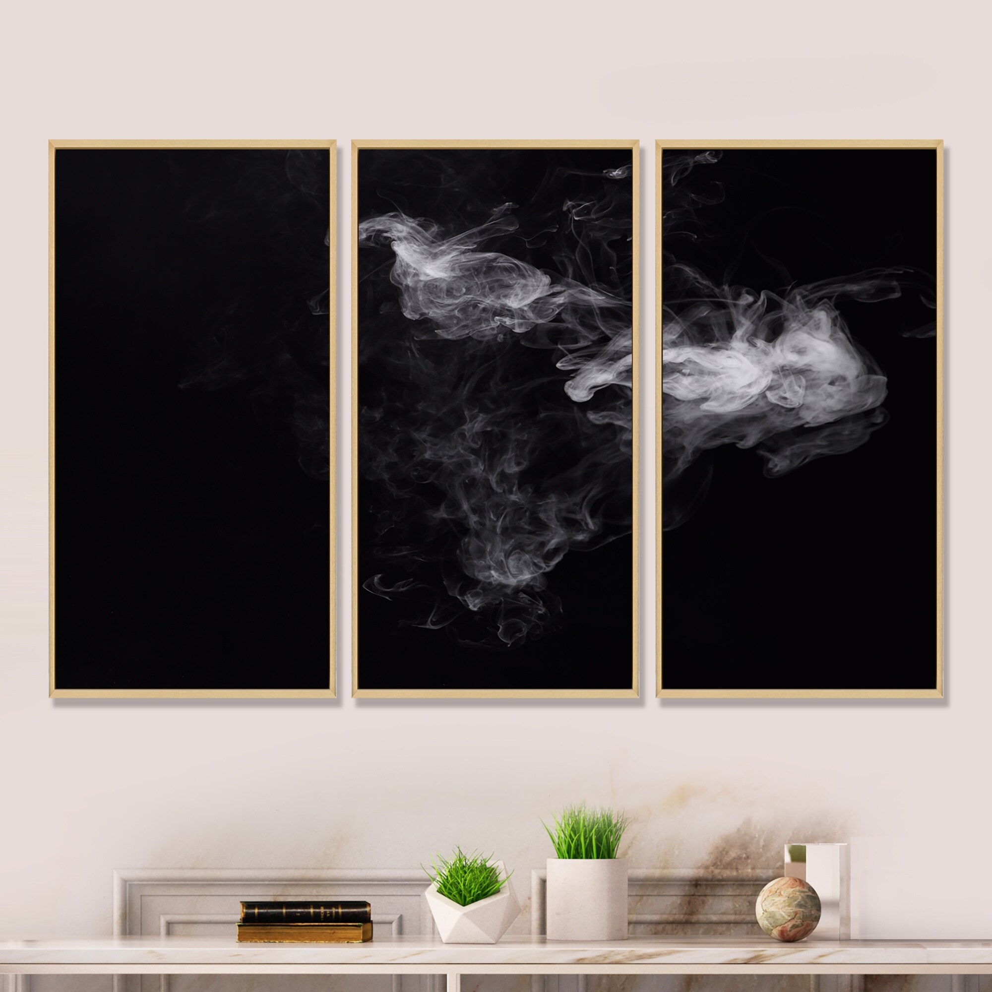 Designart "White Smoke on Black" Modern Framed Art Prints Set of 3 - 4 Colors of Frames
