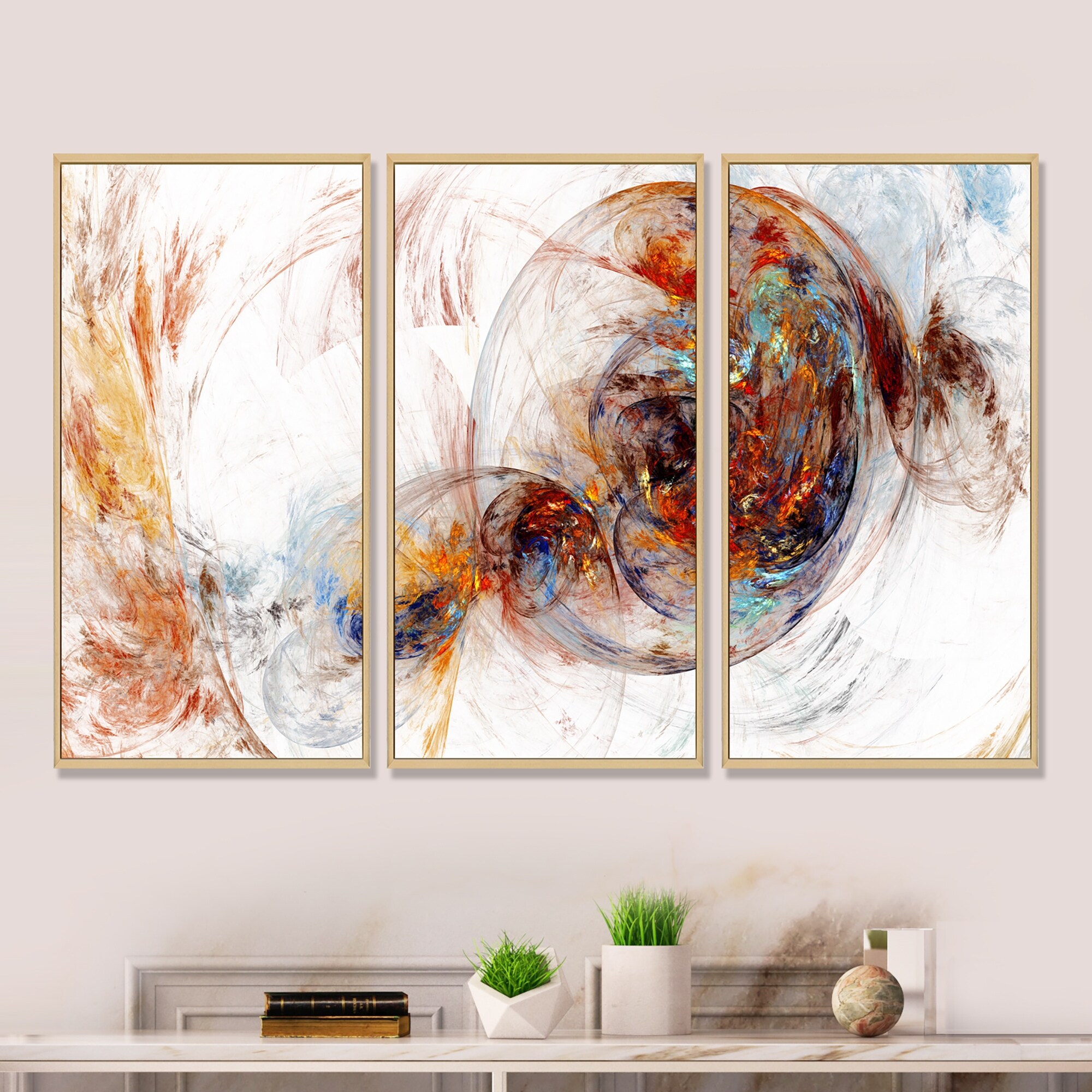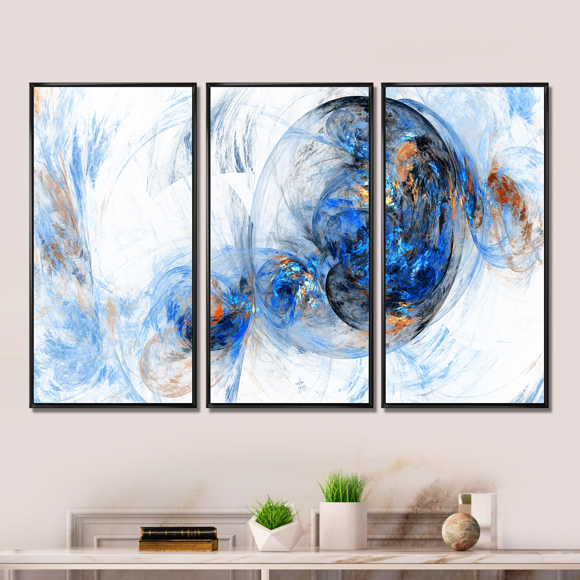 Designart "Abstract Smoke" Abstract Framed Canvas Wall Art Set of 3 - 4 Colors of Frames