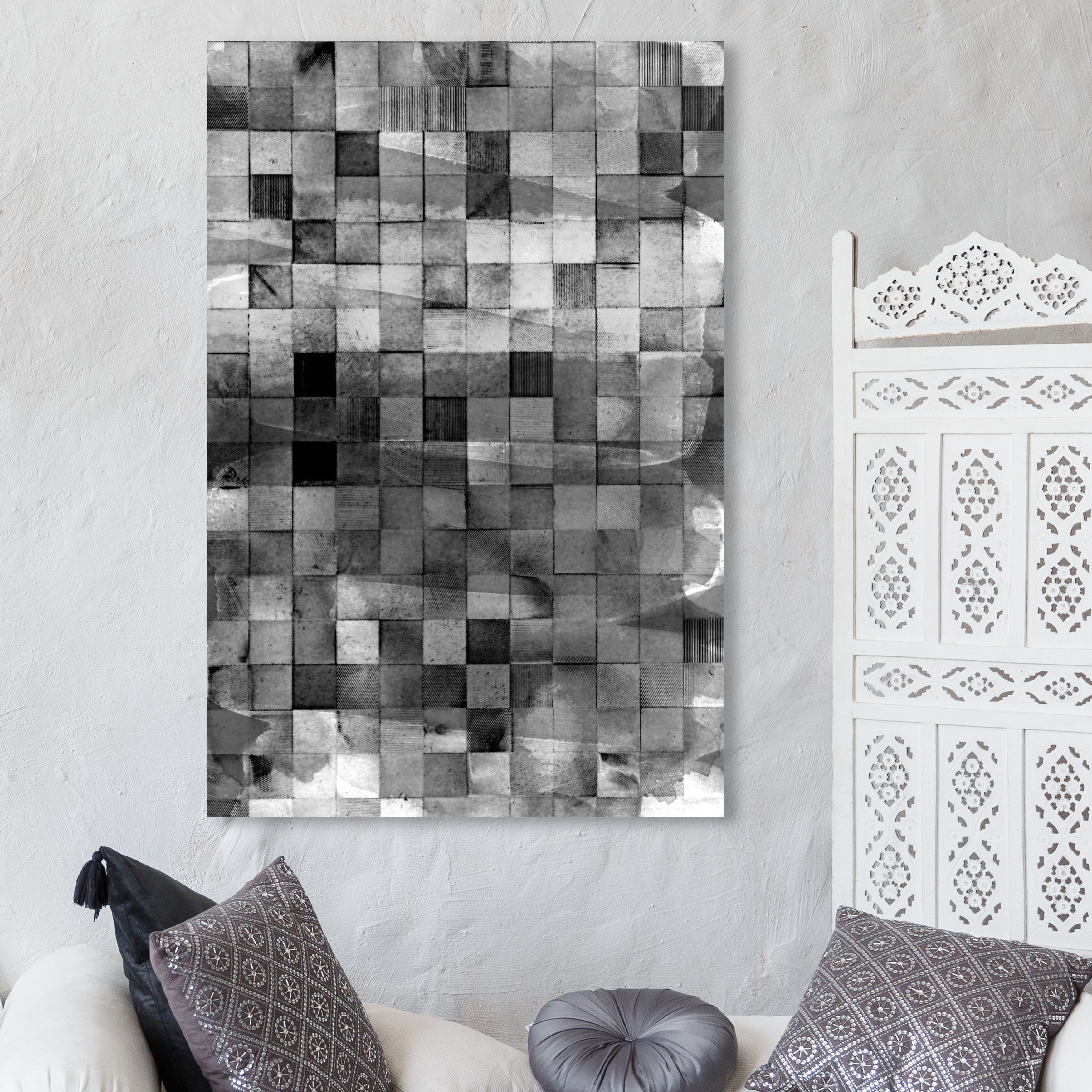 Oliver Gal 'Mosaic Smoke' Abstract Wall Art Canvas Print - Black, Gray