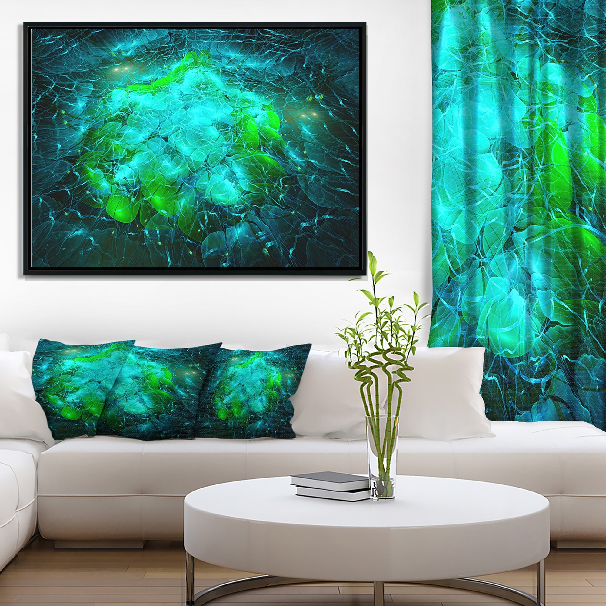 Designart "Fractal Smoke Texture Green" Abstract Framed Canvas art print