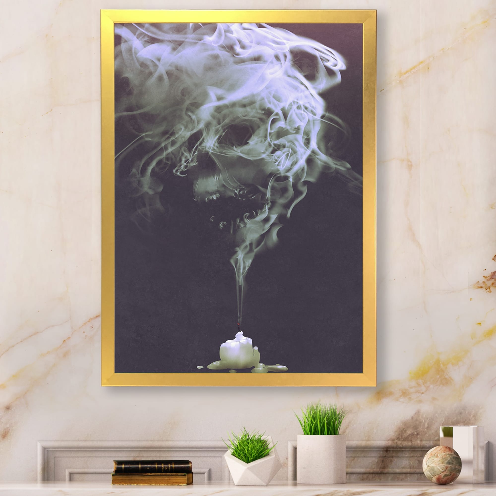 Designart "Grunge Smoke Ink Art" Modern Framed Wall Decor