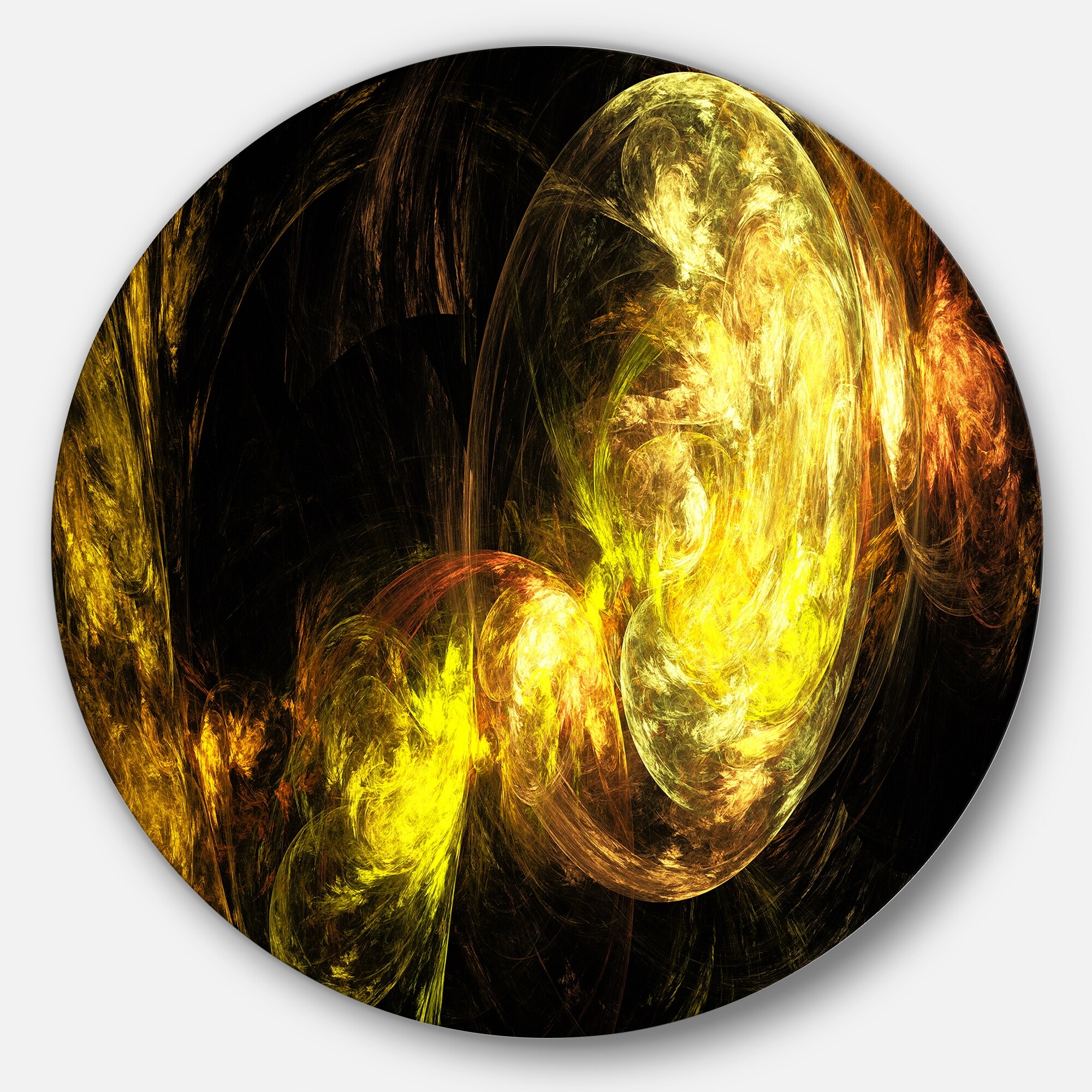 Designart 'Colored Smoke Golden' Abstract Digital Art Disc Metal Wall Art