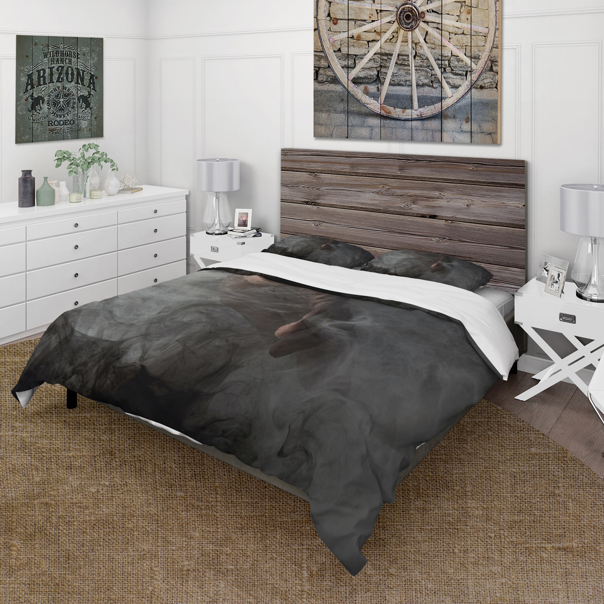 Designart 'Abstract Grey Swirling Smoke II' Modern Duvet Cover Set
