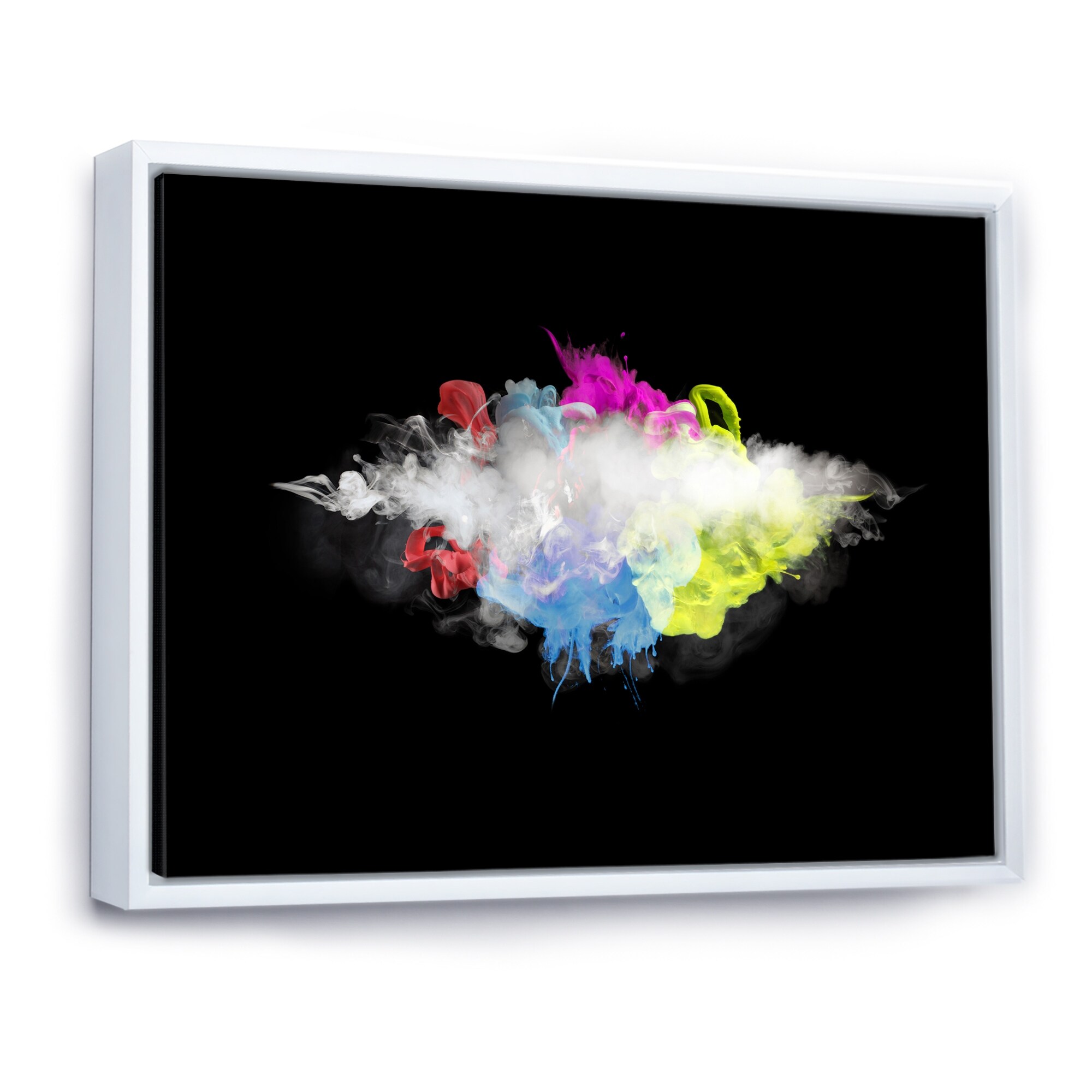 Designart "White Smoke With Vibrant Colours I" Modern Framed Canvas Wall Art Print