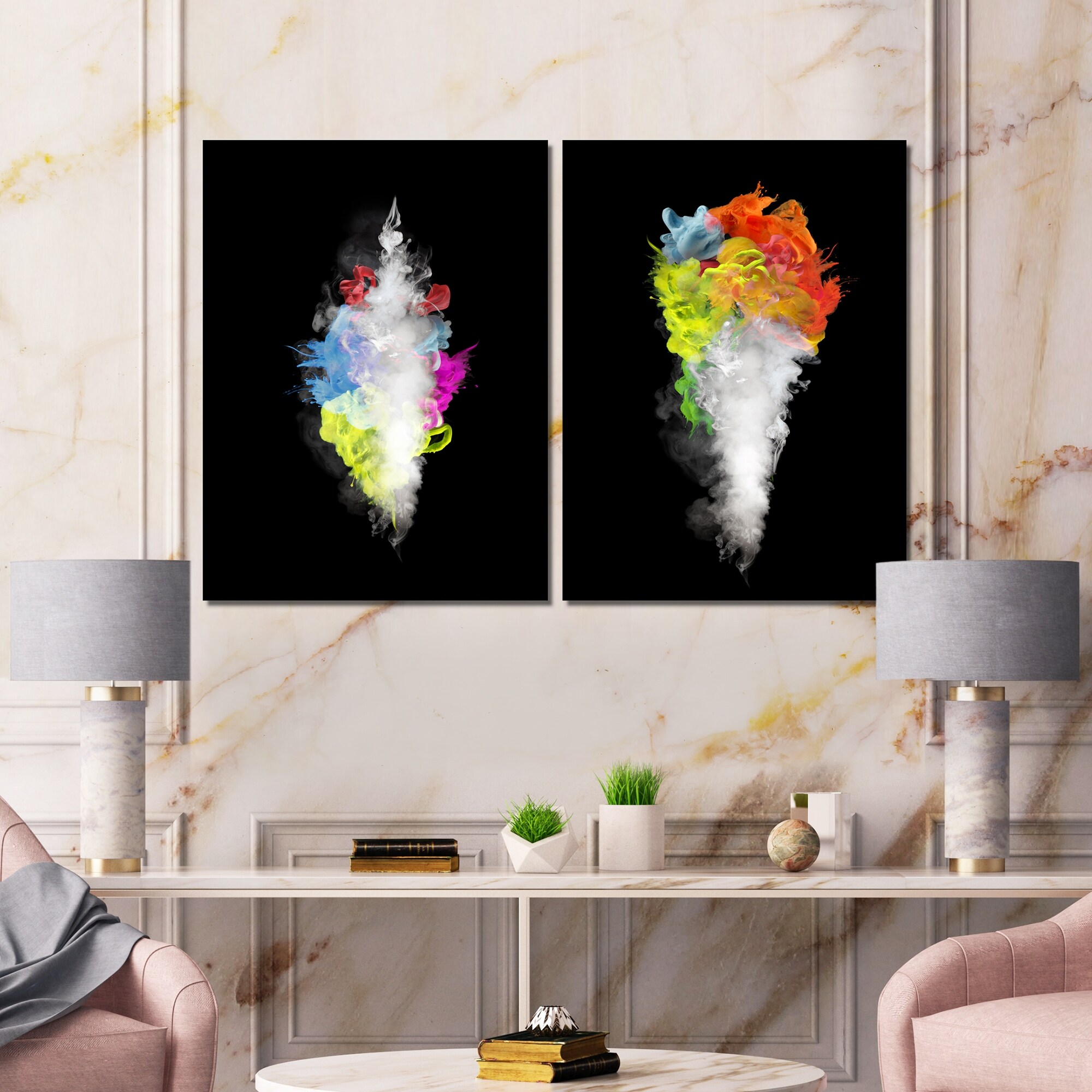 Designart 'White Smoke With Vibrant Colours I' Modern Art Set of 2 Pieces