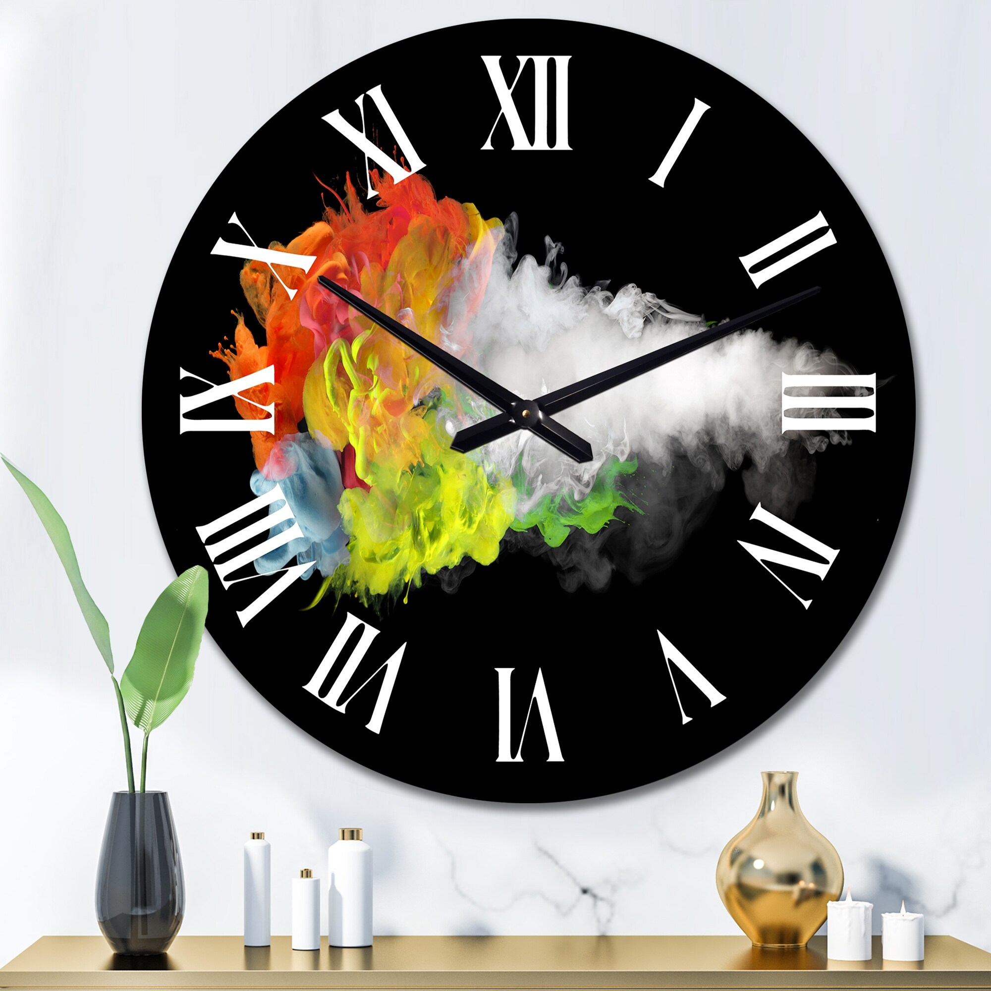 Designart 'White Smoke With Vibrant Colours II' Modern wall clock
