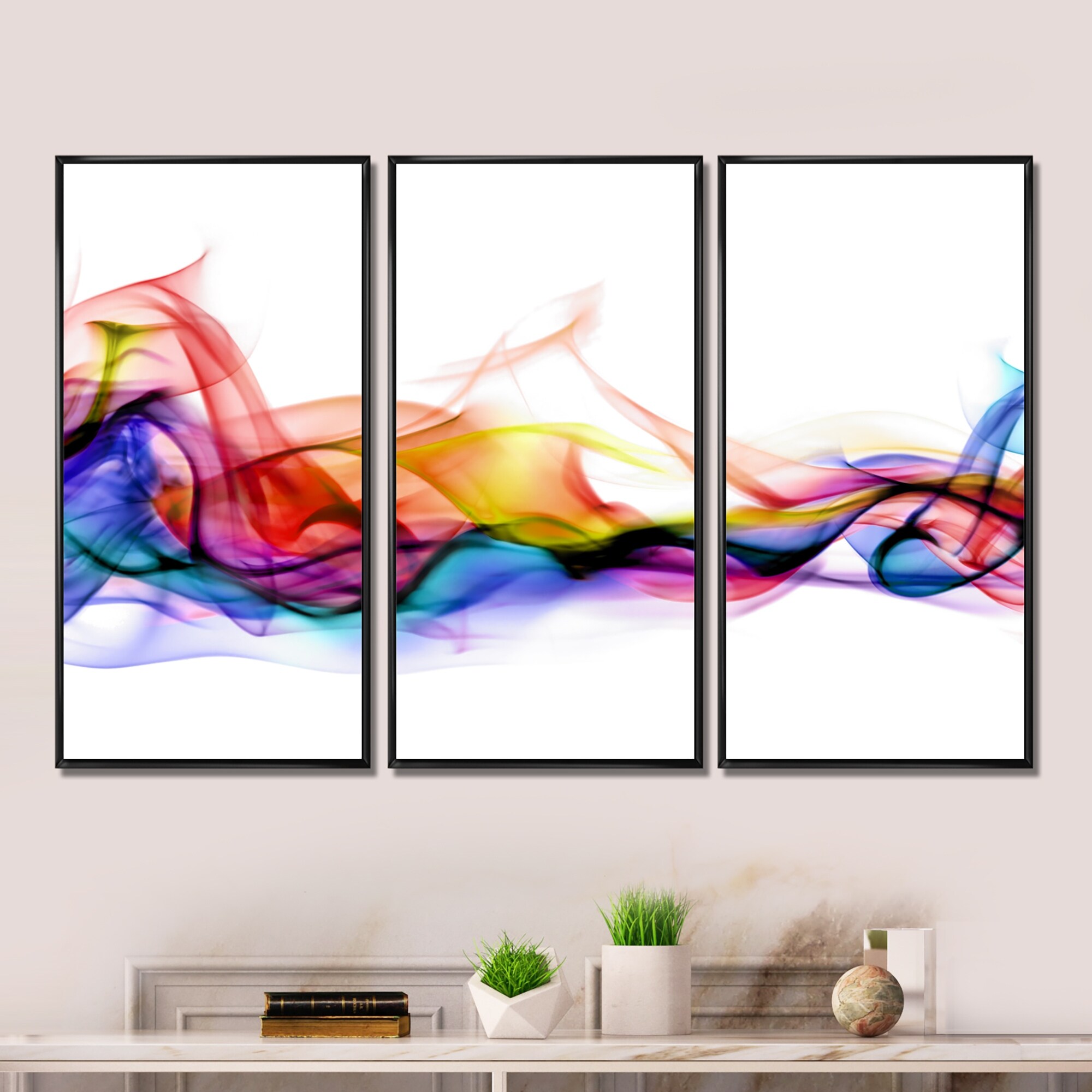 Designart "Abstract Smoke" Abstract Framed Canvas Wall Art Set of 3 - 4 Colors of Frames