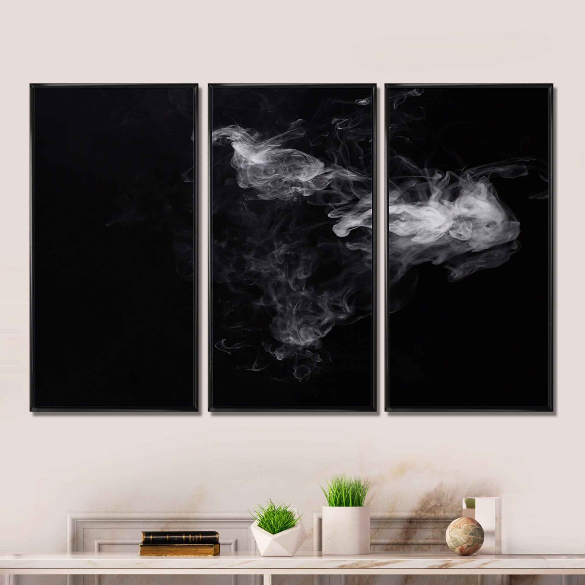 Designart "Cloud of Gray Smoke in the Dark" Modern Framed Wall Decor Set of 3 - 4 Colors of Frames