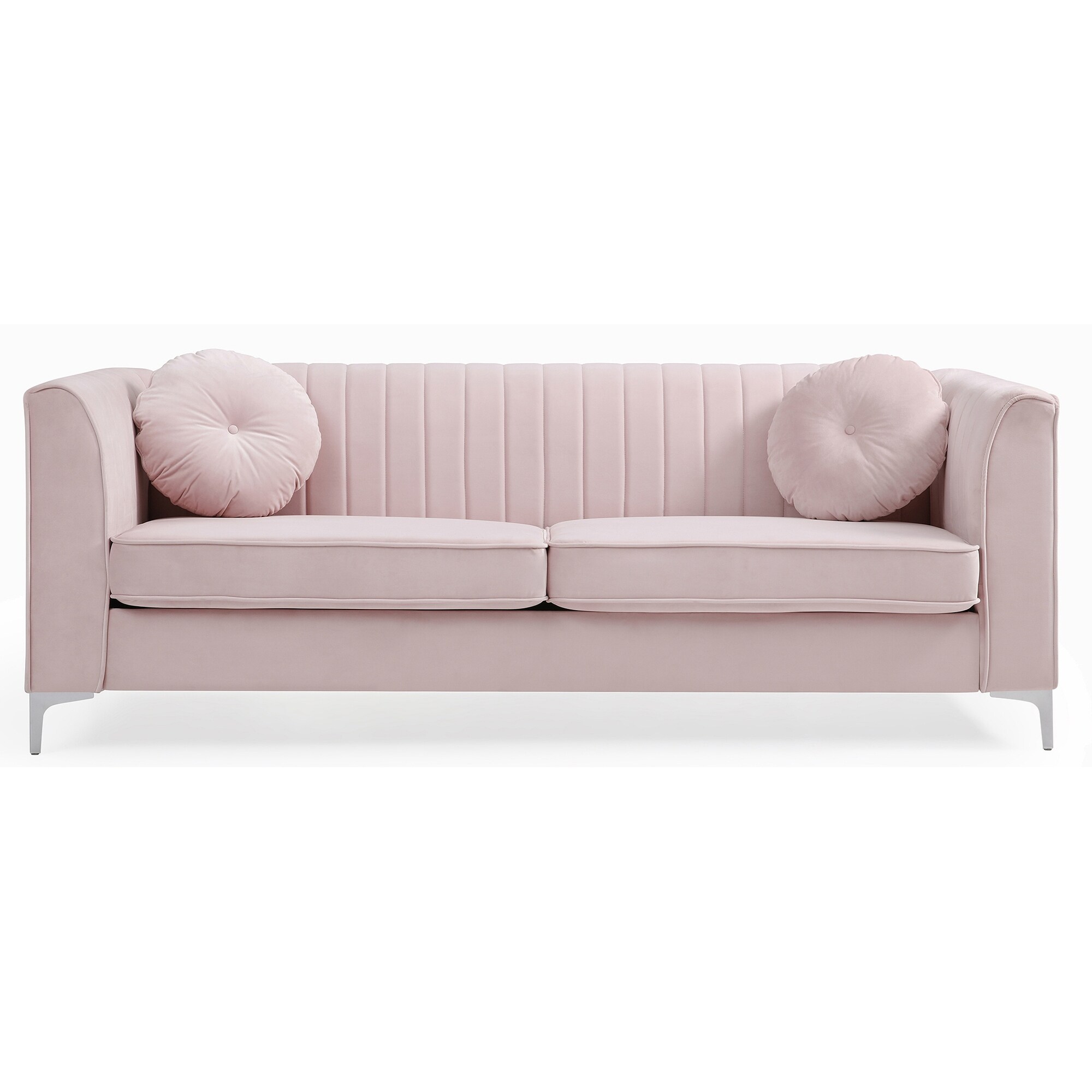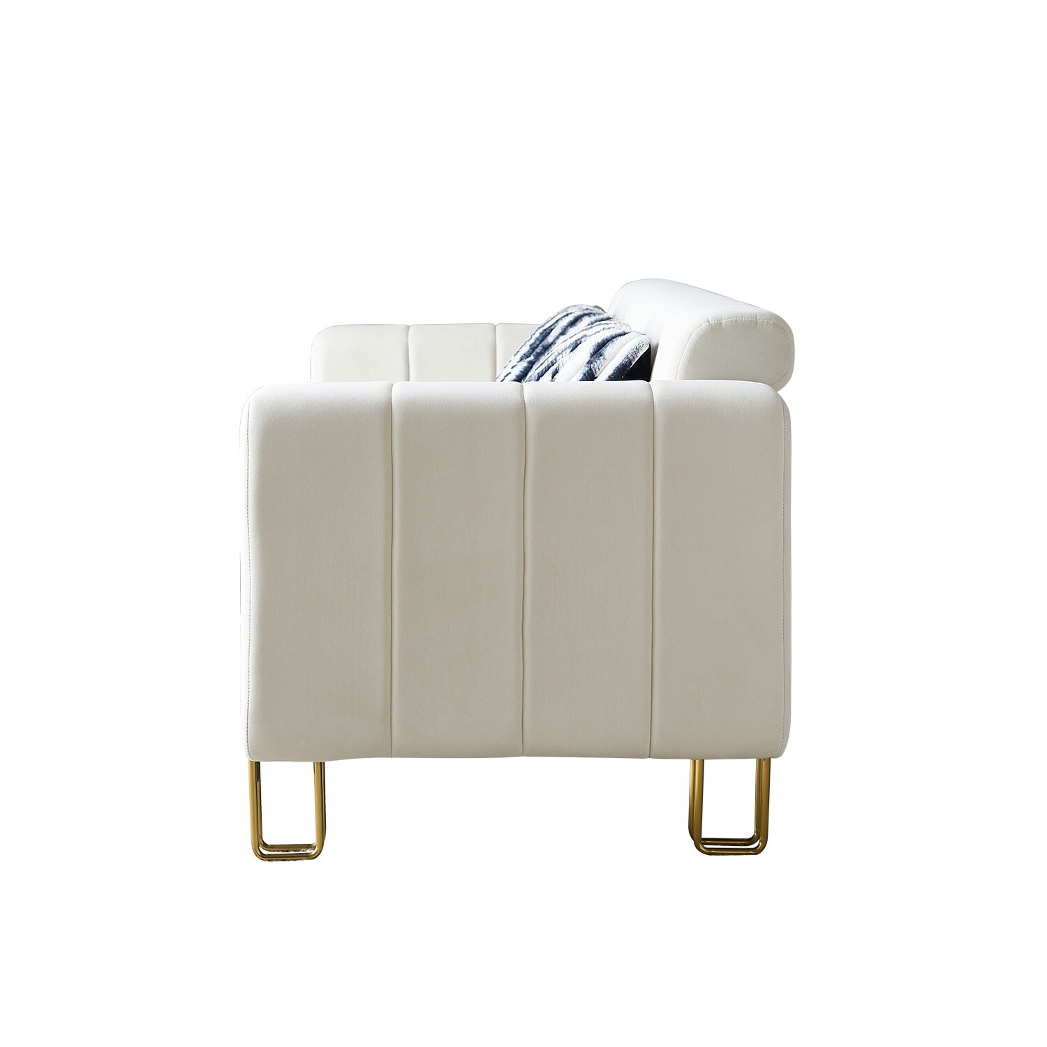 Modern Velvet Square Arm Tufted 3-Seat Sofa with 2 Throw Pillows, Removable Cushions