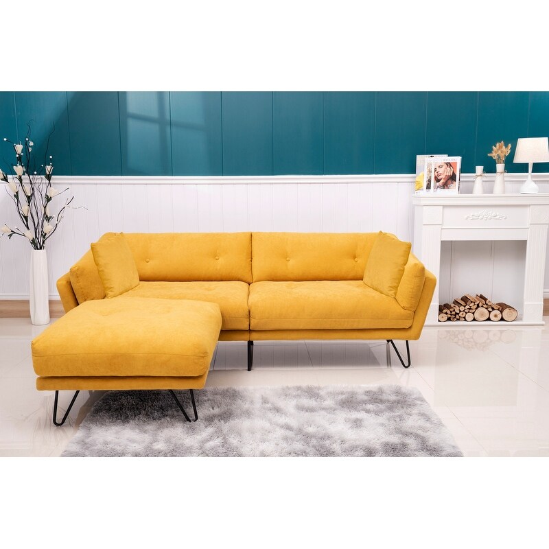 85.8" yellow chenille fabric sofa
