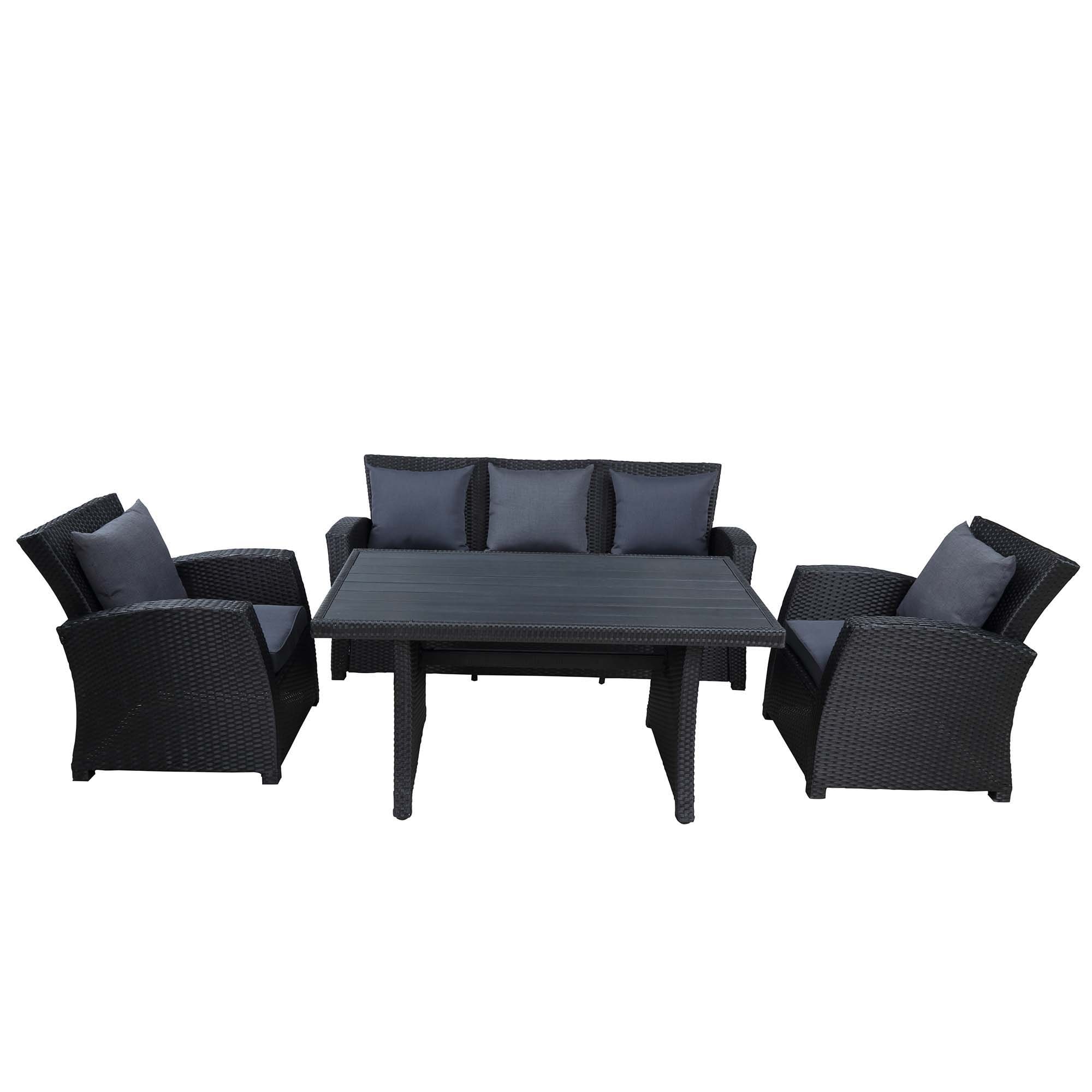 4-Piece Outdoor Sofa Set with Sofa,Chair and Table - Black