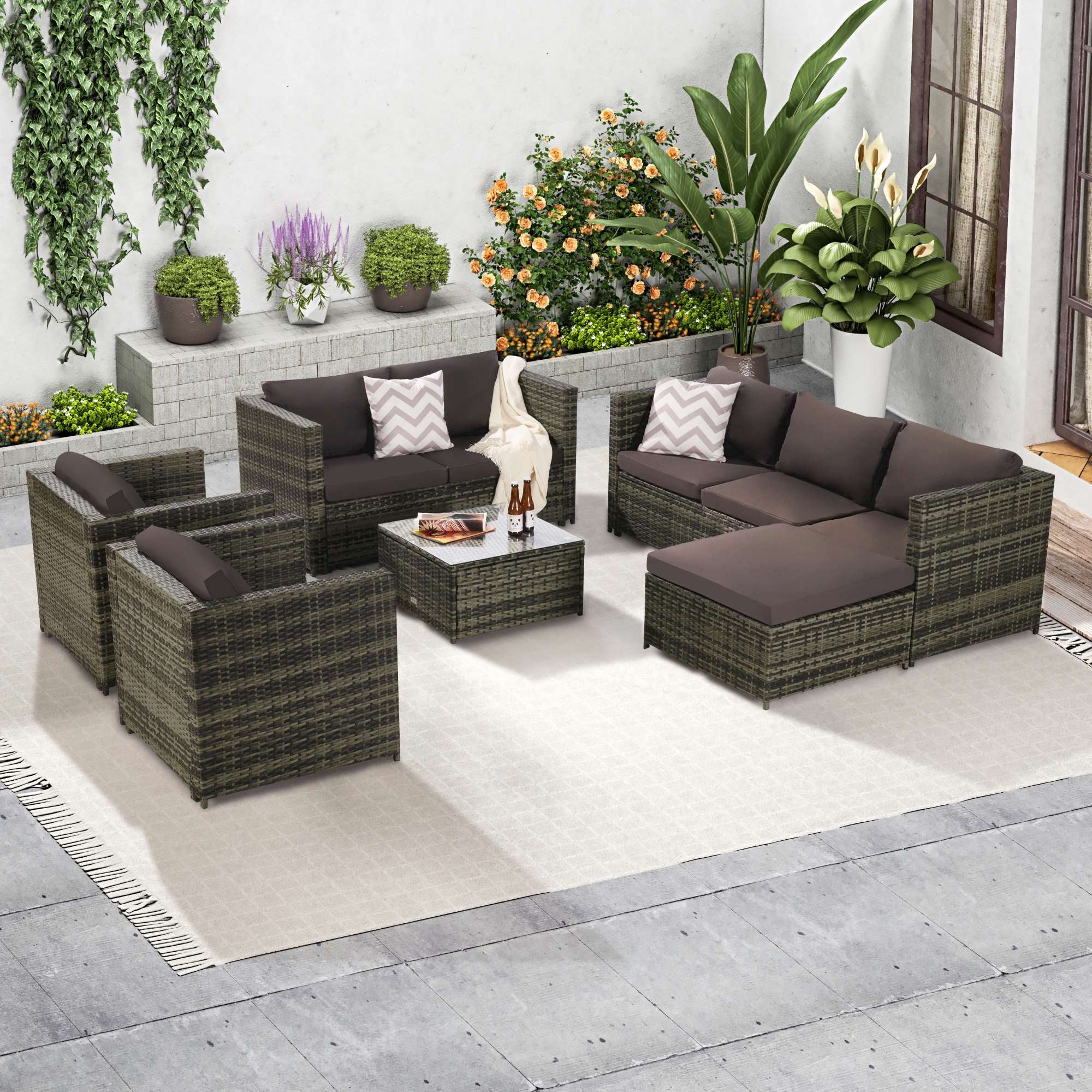 Clihome 8-Piece Patio Wicker Sectional Sofa