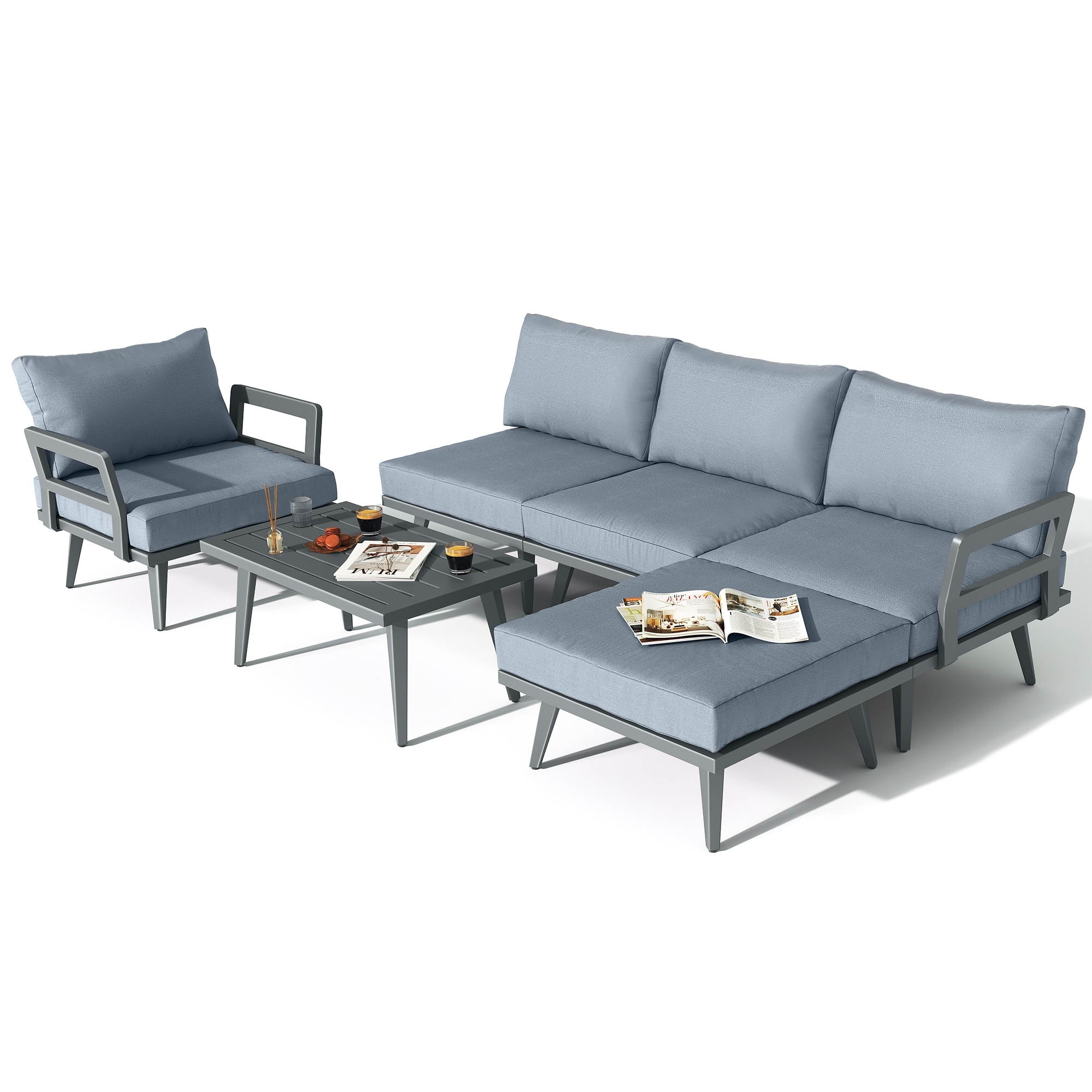 6-piece Patio Aluminum Sectional Sofa Set with Table
