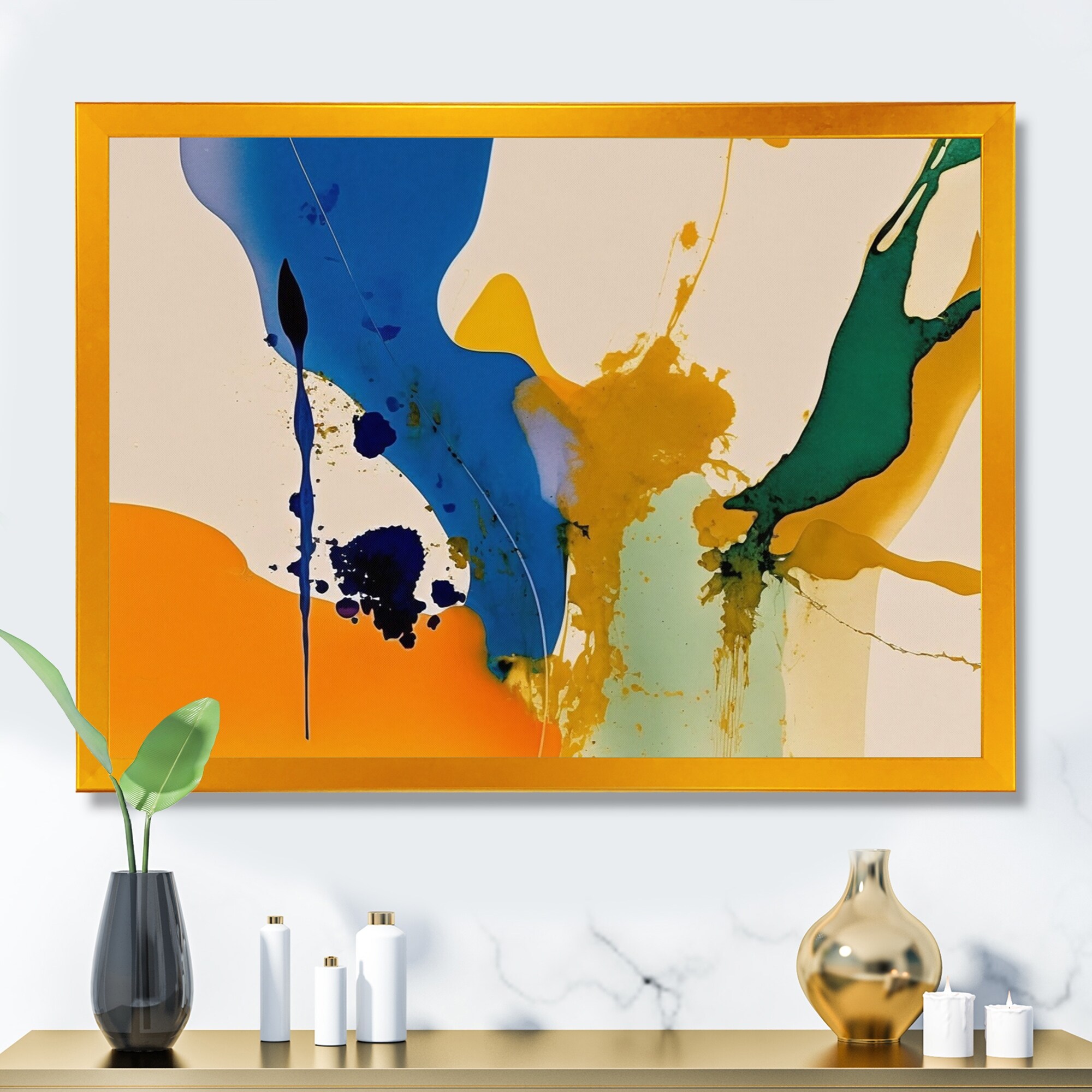 Designart "Awakenings In Spanish Moss III" Abstract Liquid Ink Framed Canvas Wall Art Print