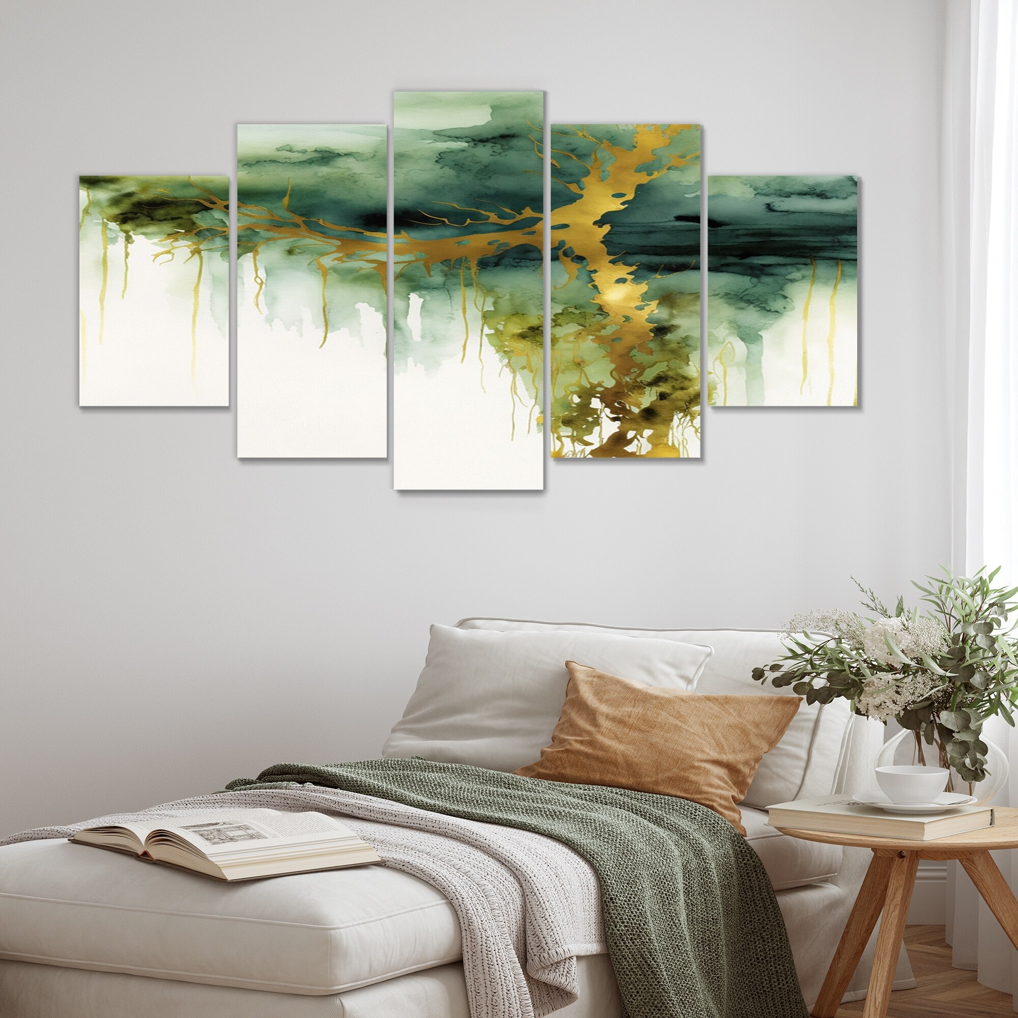 Designart "Awakenings In Spanish Moss IV" Abstract Liquid Ink Multipanel Canvas Print