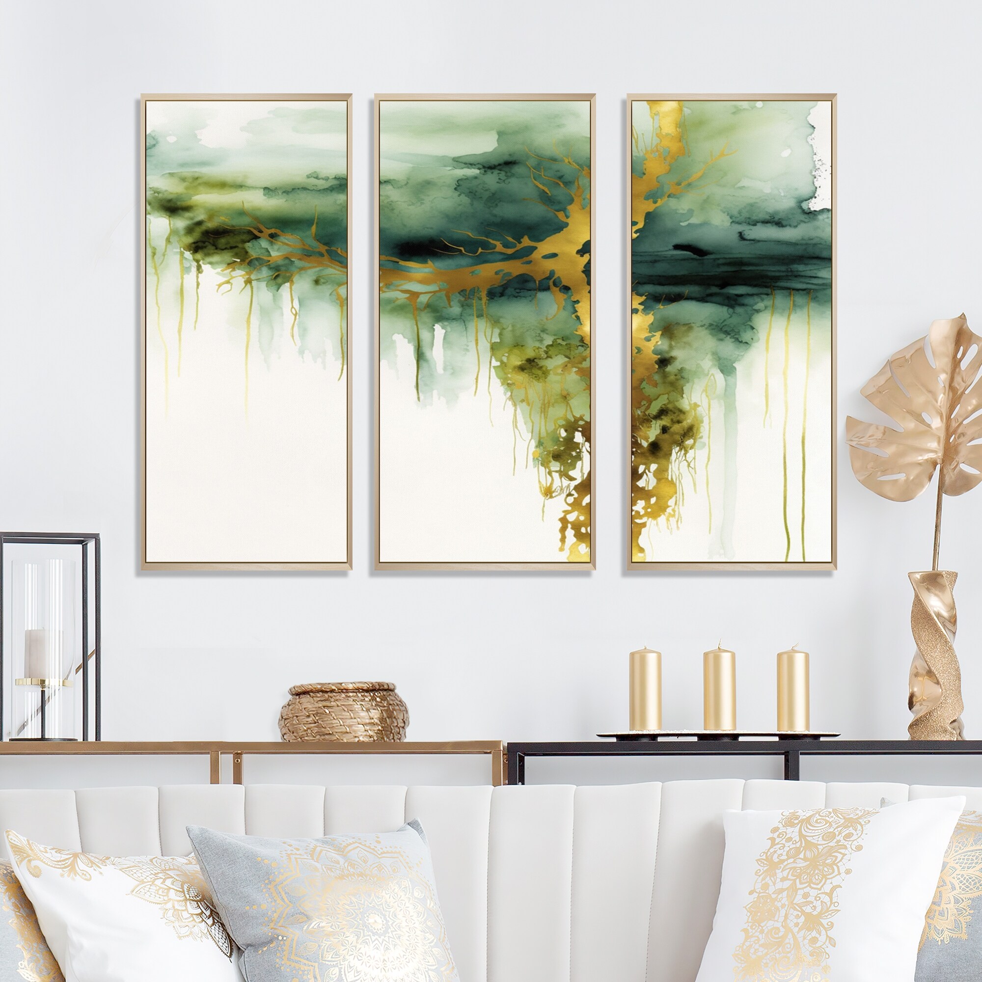 Designart "Awakenings In Spanish Moss II" Abstract Liquid Ink Framed Canvas Wall Art Print - 3 Panels