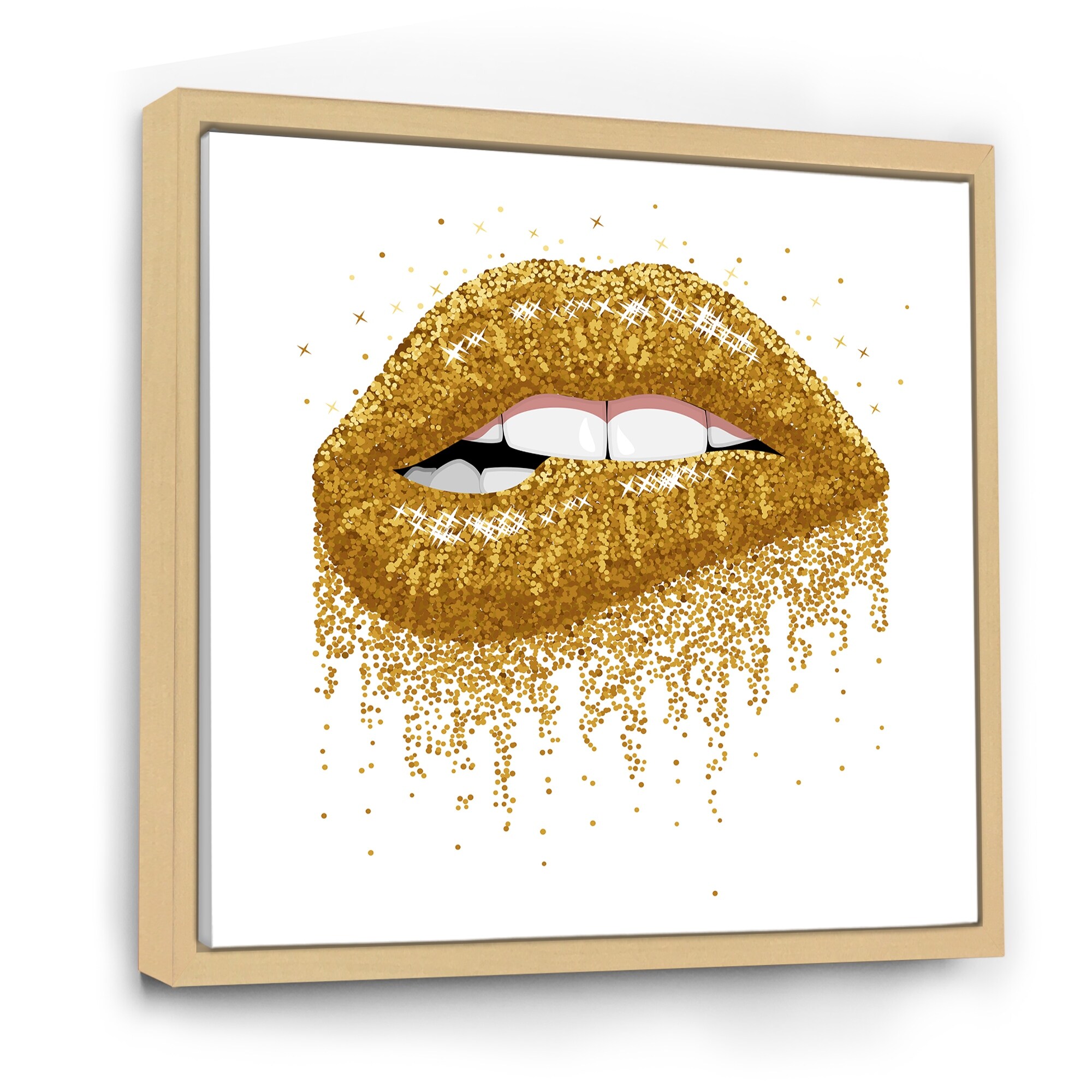 Designart "Woman Lips With Glitter Gold Sparkles" Modern Framed Canvas Wall Art Print