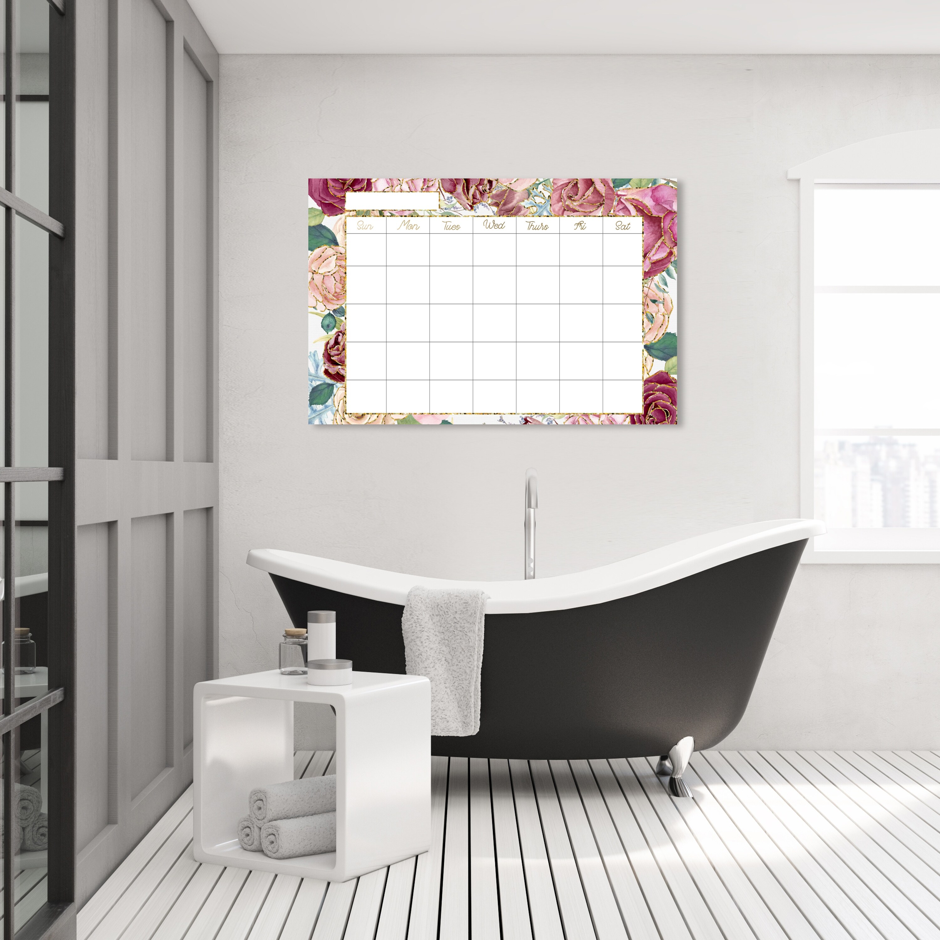 Oliver Gal 'Sparkling Flowers Calendar' Floral and Botanical Wall Art Canvas Print Florals - Pink, Gold