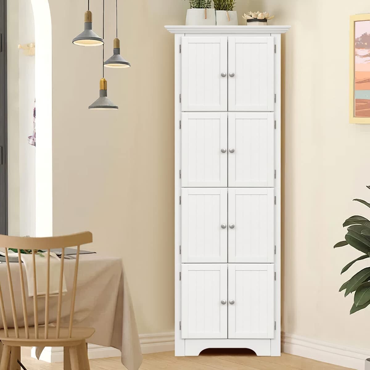 Corner Storage Cabinet, Corner Hutch Cabinet with 8 Doors, Organizer Solid Wood 90 Degree Storage Cabinet
