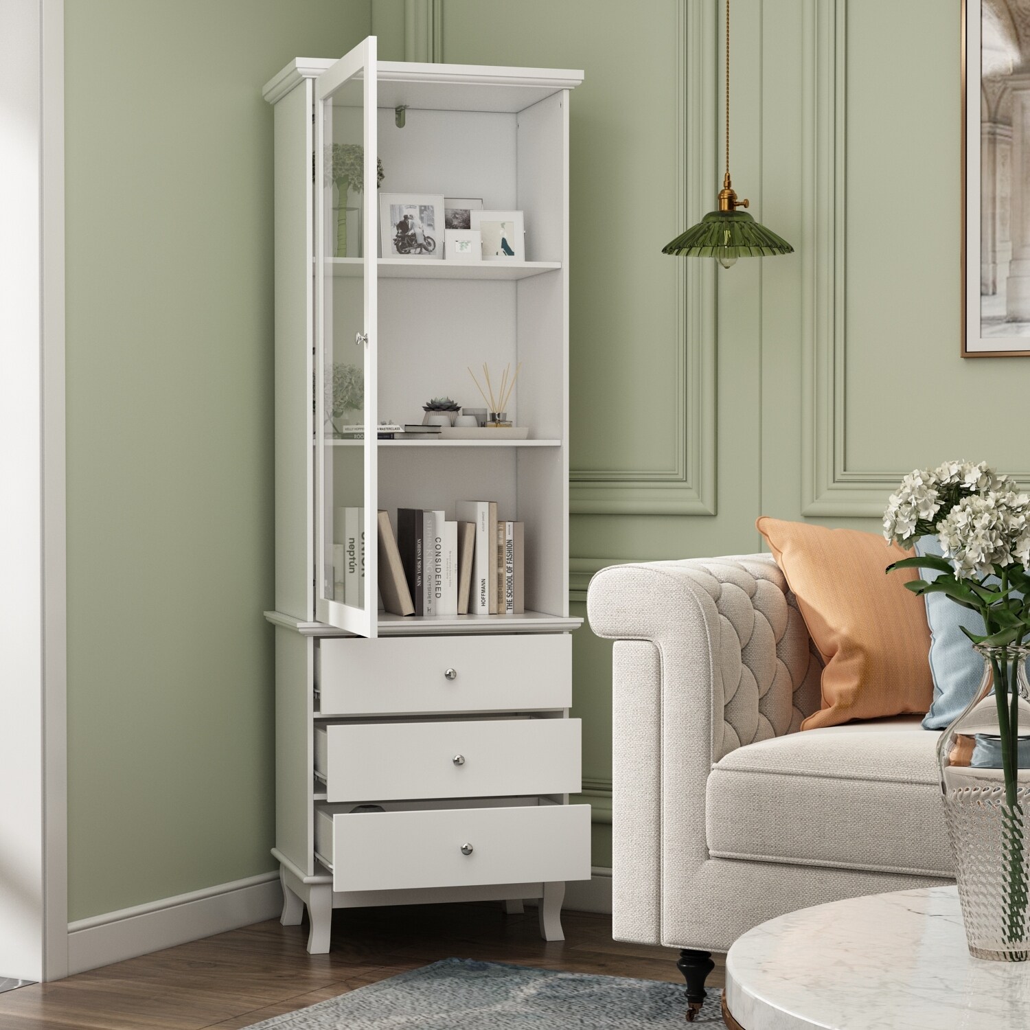 Tall Corner Cabinet w/Glass Door Free-Standing Corner Storage Cabinet
