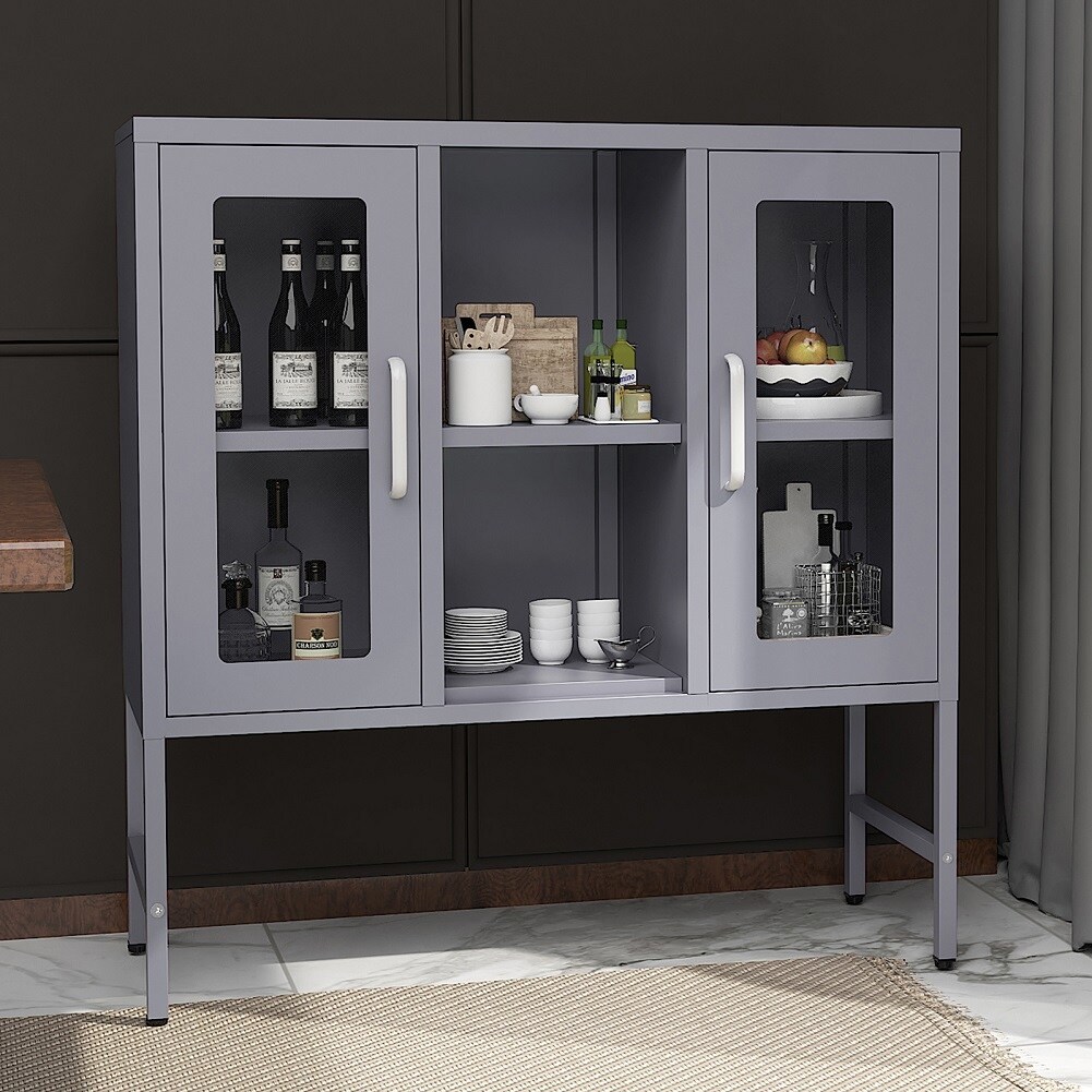 Metal Storage Cabinet with Tempered Glass Door, Display Cabinet